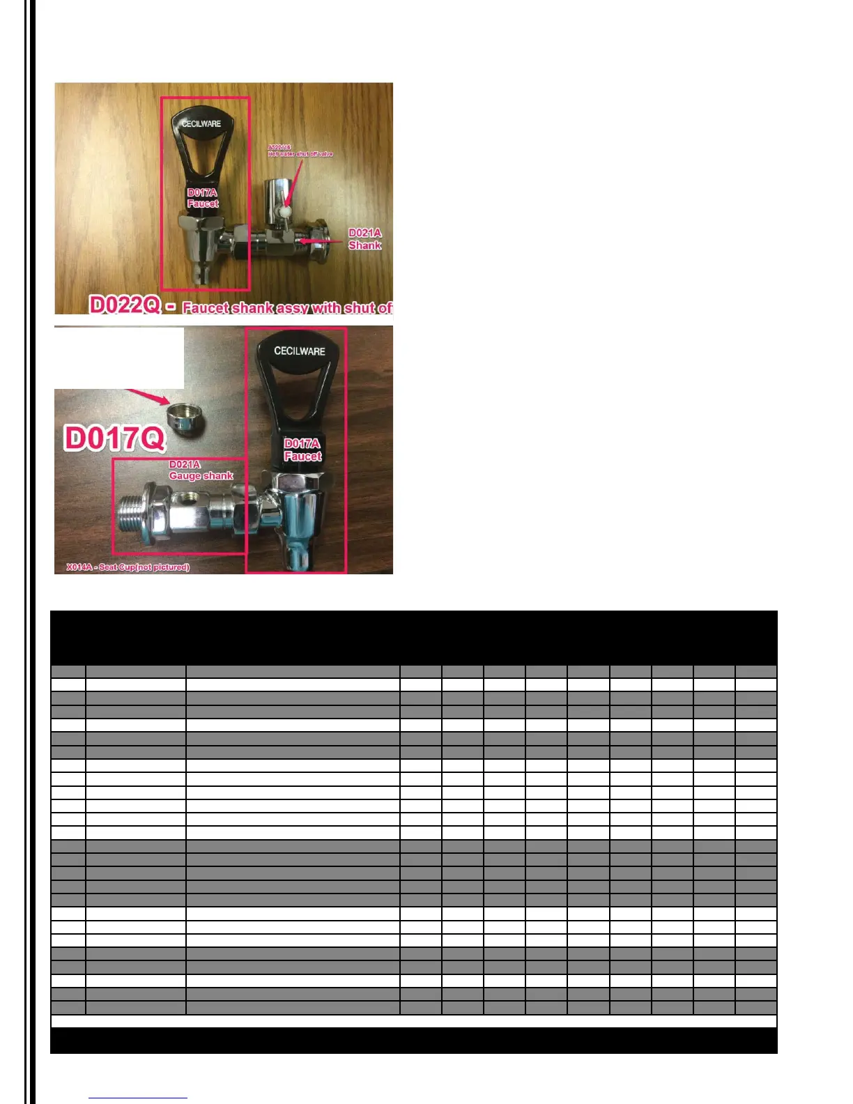 9 D017Q FAUCET, SHANK ASSEMBLY (COFFEE) 1 1 1 2 2 2 2 2 2