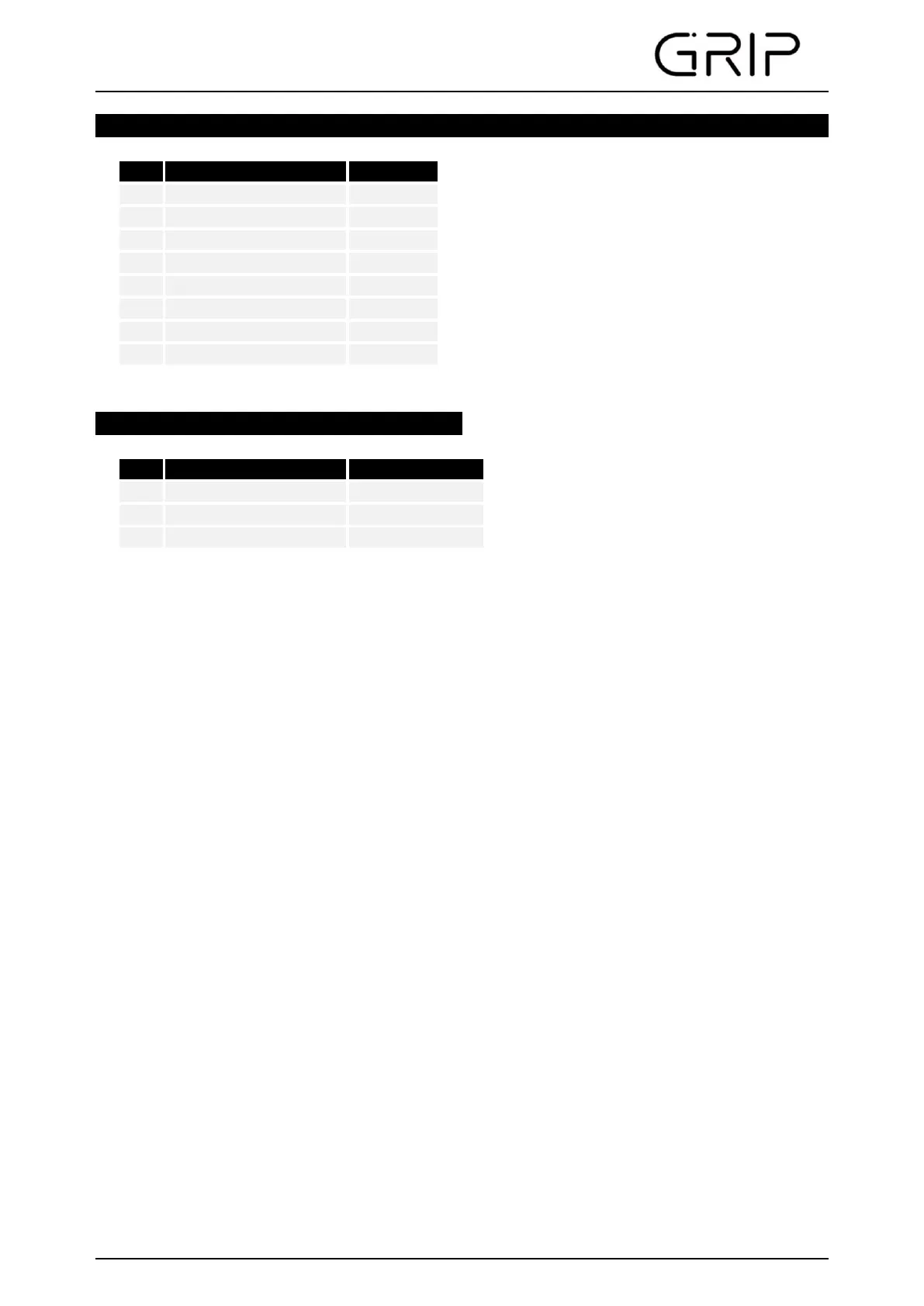 Grip G-MGW - 8 Parts List; Spare and Wear Parts