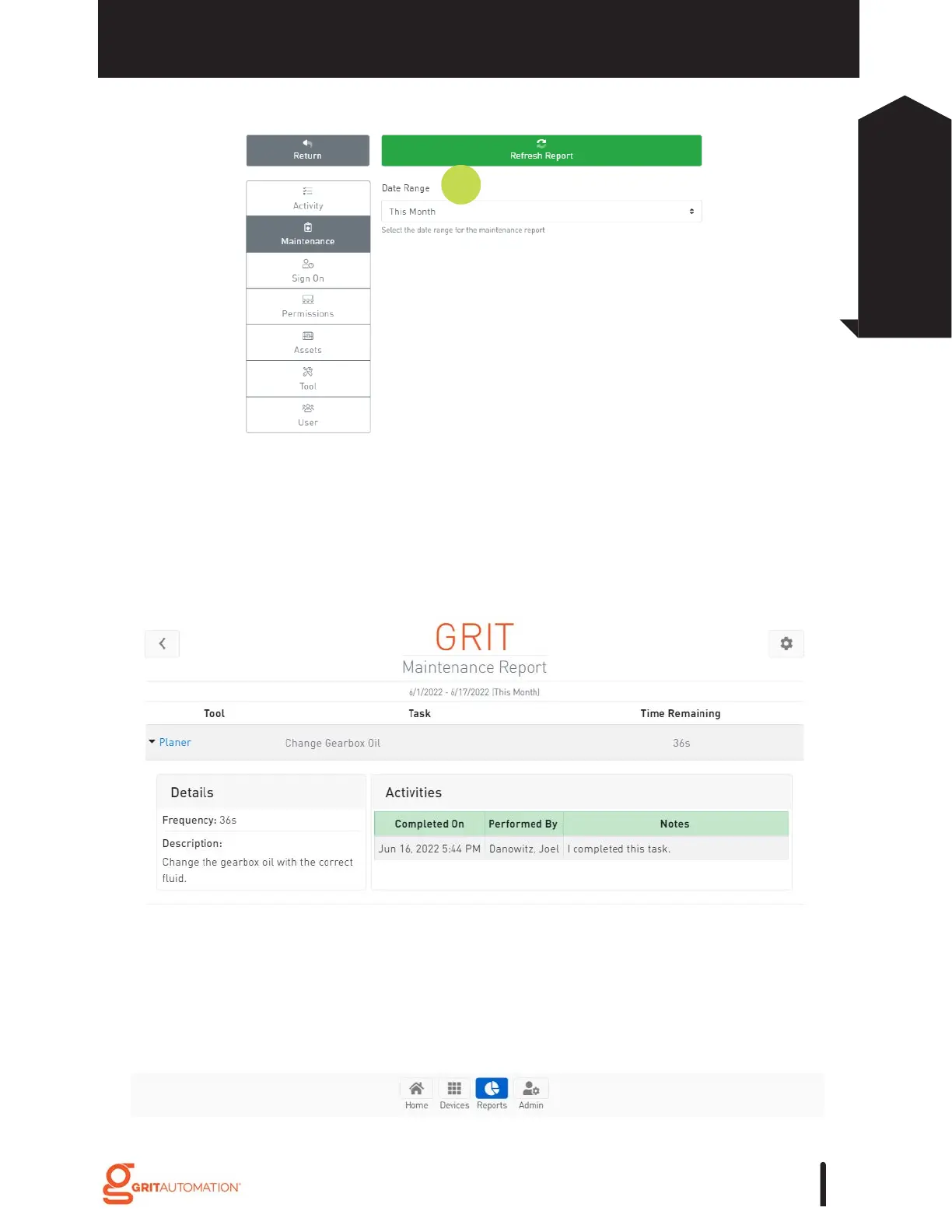 GRIT Lock - Maintenance Reports
