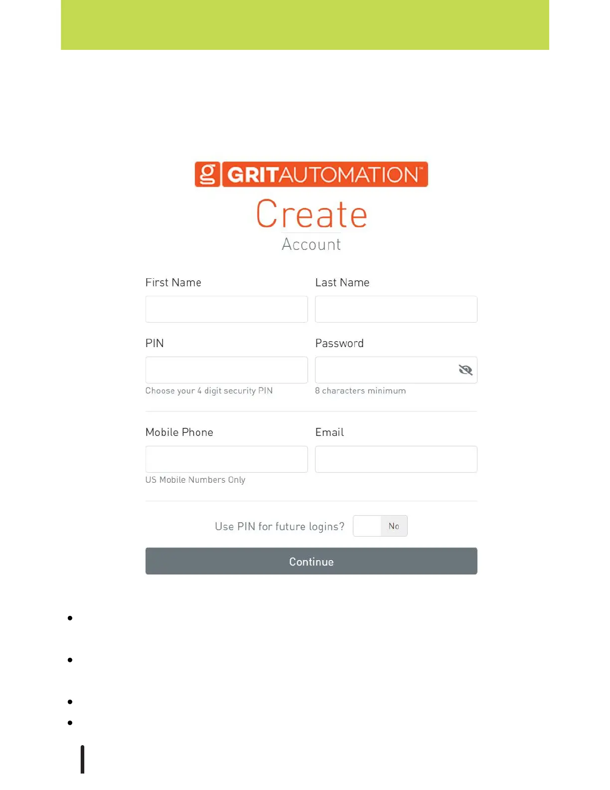 The 4-digit PIN can be used to login to the GRIT account in the future, as well as, used