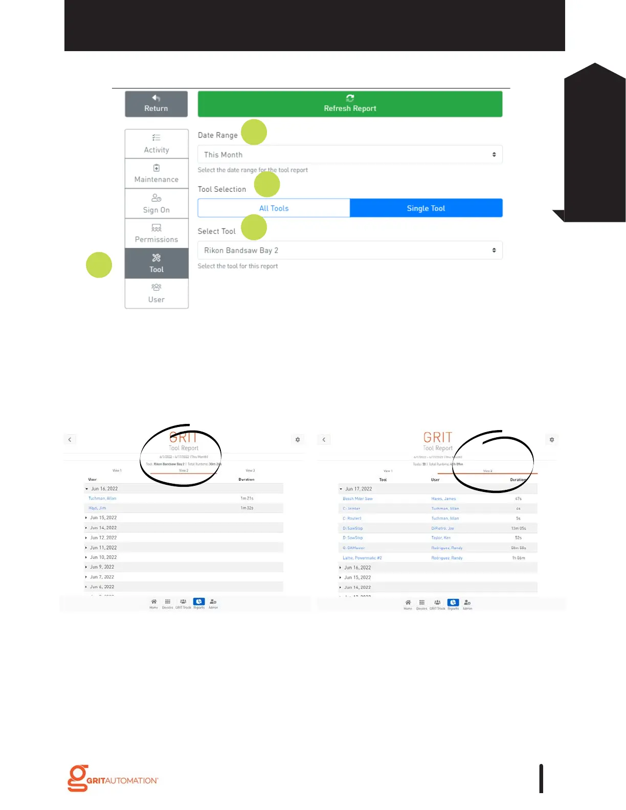 Select Tool: a dropdown menu of all tools in the shop for reports on a single tool.