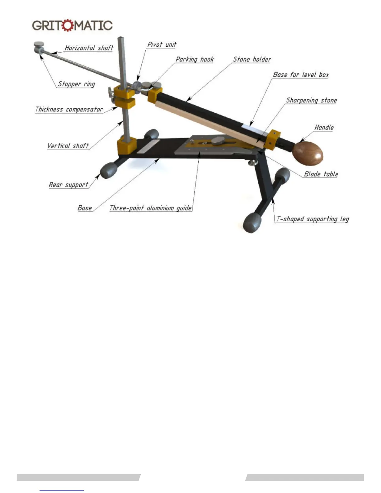 - Light-alloy horizontal shaft for better pressure control during the sharpening process