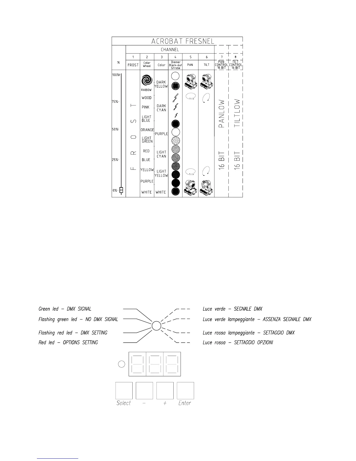 Per modificare l’indirizzo DMX del proiettore premere una volta il tasto (SELECT) e agire sui