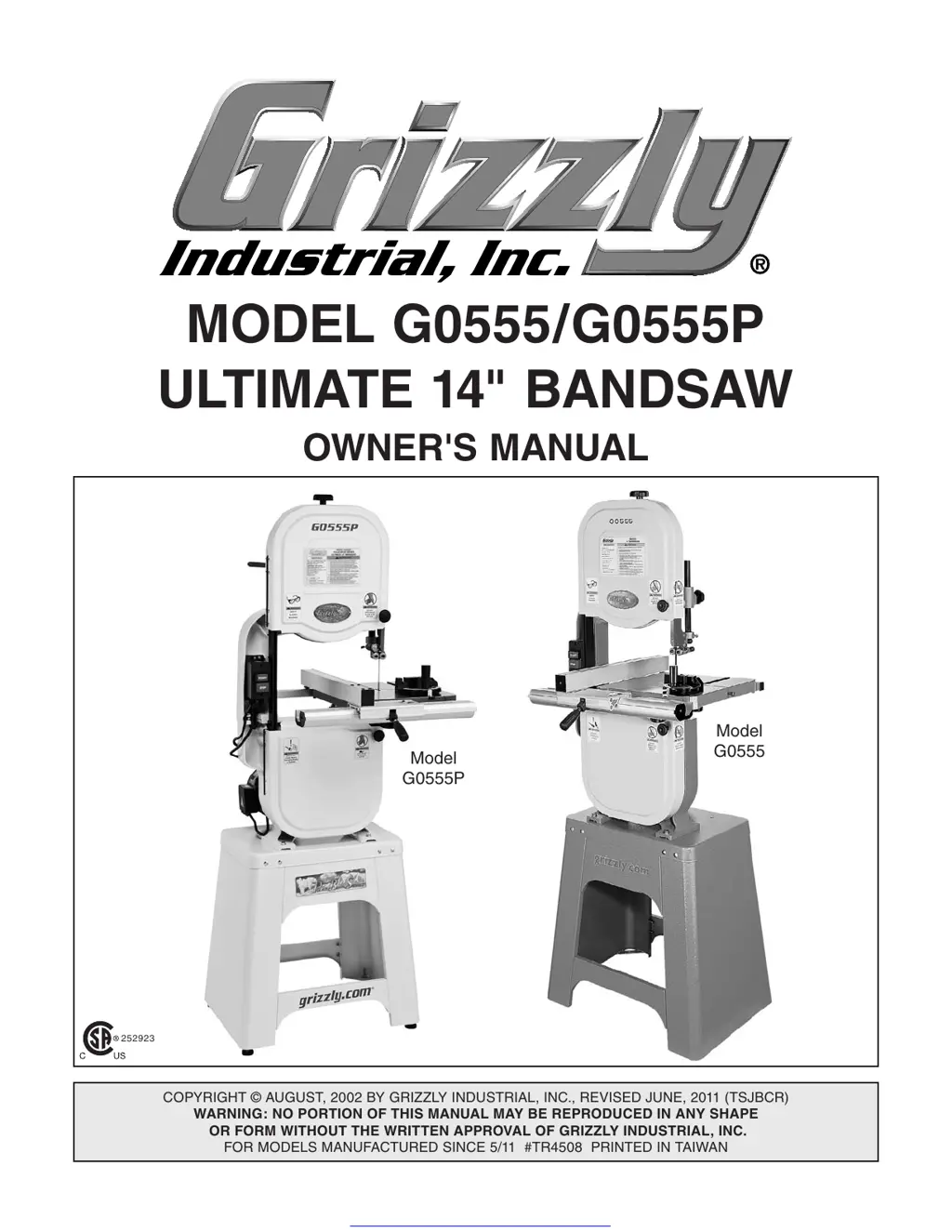 If your Grizzly Saw doesn't start, there are several potential causes: * The power supply might be faulty or switched OFF. Ensure the hotlines have the correct voltage and the main power supply is ON. * The plug or receptacle could be faulty or wired incorrectly. Test for good contacts and correct the wiring if needed. * There might be an open or high resistance in the wiring. Check for broken wires or disconnected/corroded connections, and repair or replace them. * The motor connection could be wired incorrectly. * The start capacitor might be faulty (110V only). Test or replace it. * The motor ON/OFF switch might be faulty. Replace it. * The centrifugal switch could be at fault. Adjust or replace it.
