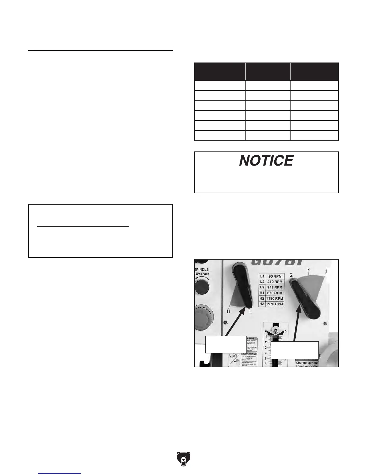 Figure 26. Spindle speed controls.