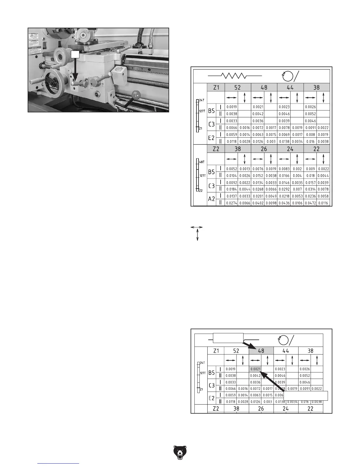 Figure 68. Feed rate chart/Z Gear headings.