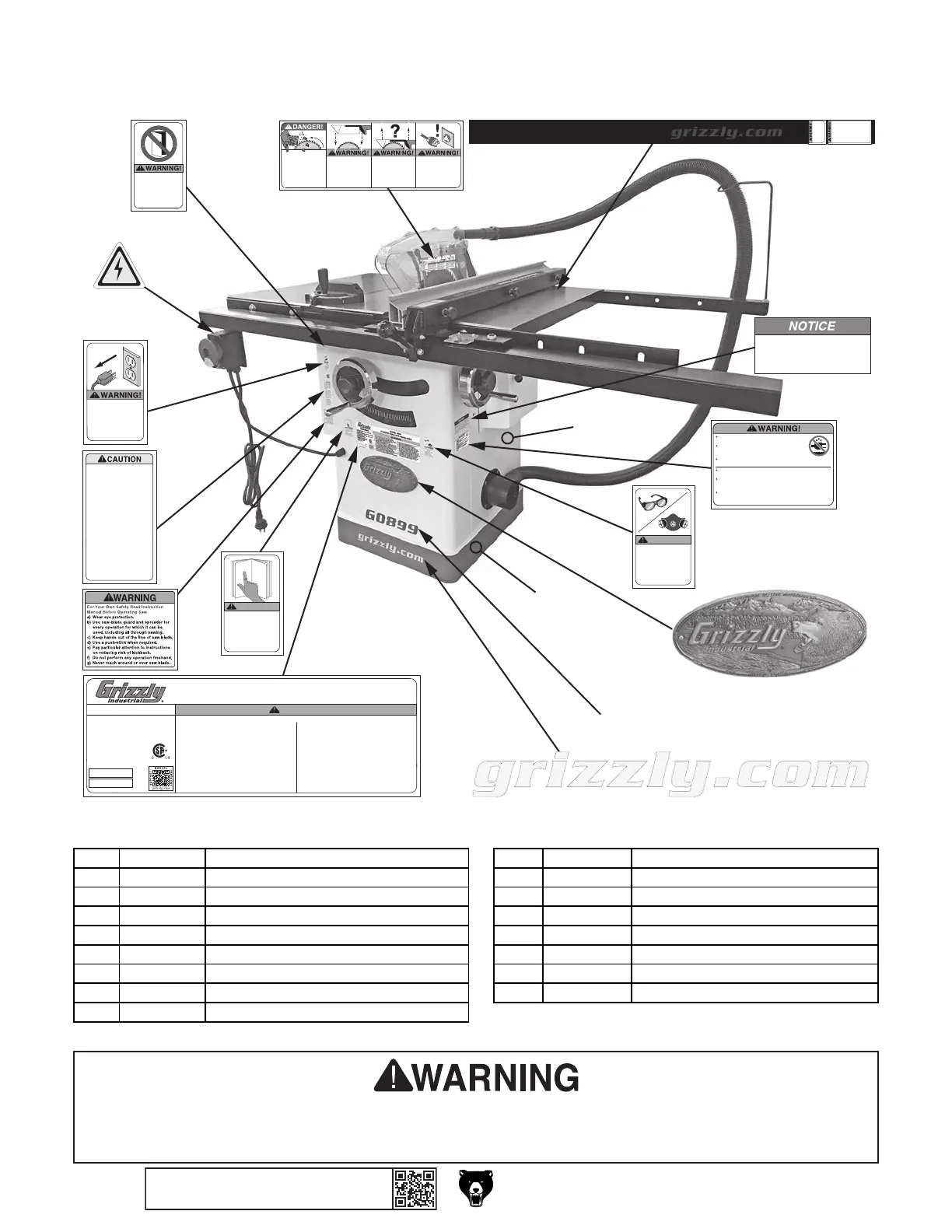 703 P0899703 TABLE SAW WARNING LABEL 712 P0899712 GRIZZLY NAMEPLATE