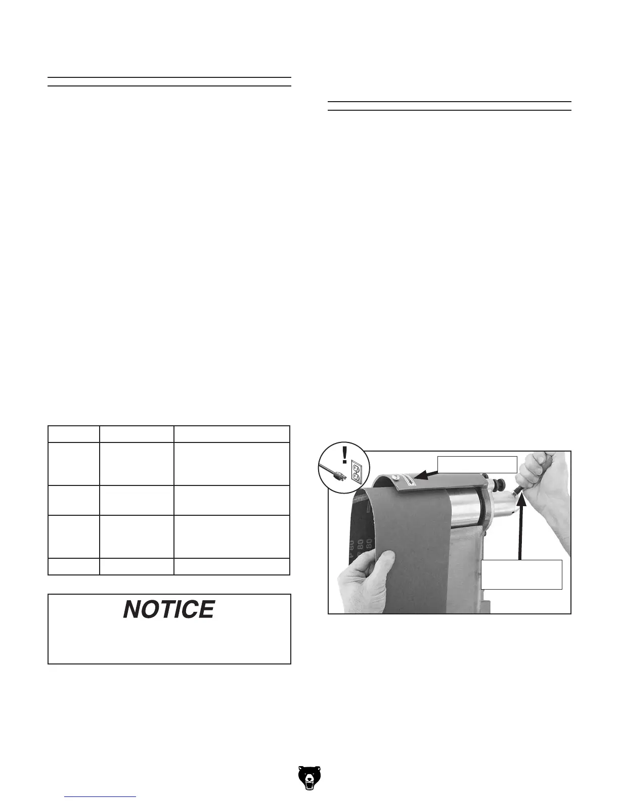 Note: Typically, sanding belts have a direc-