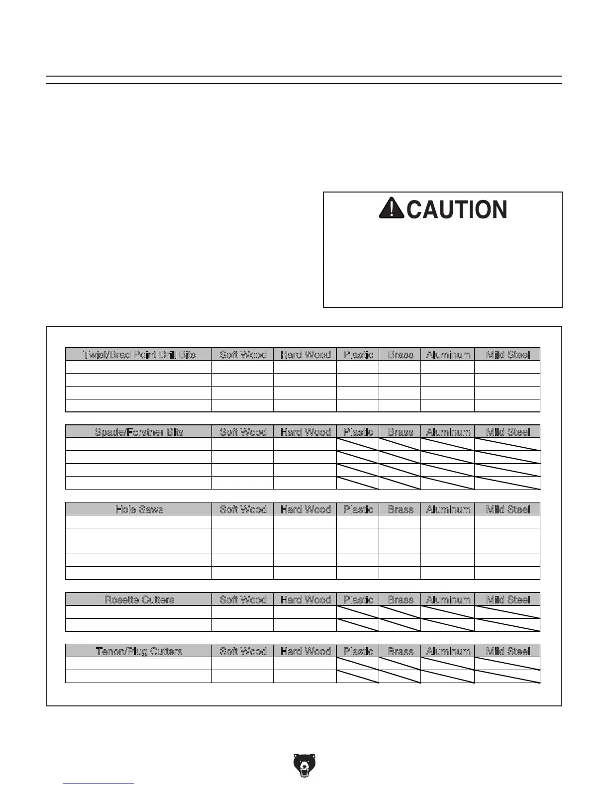 drill bits, cutters, or hole saws. Exceeding the