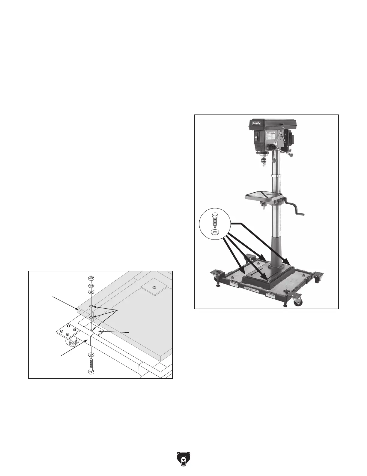 7. With help of an assistant, place drill press on