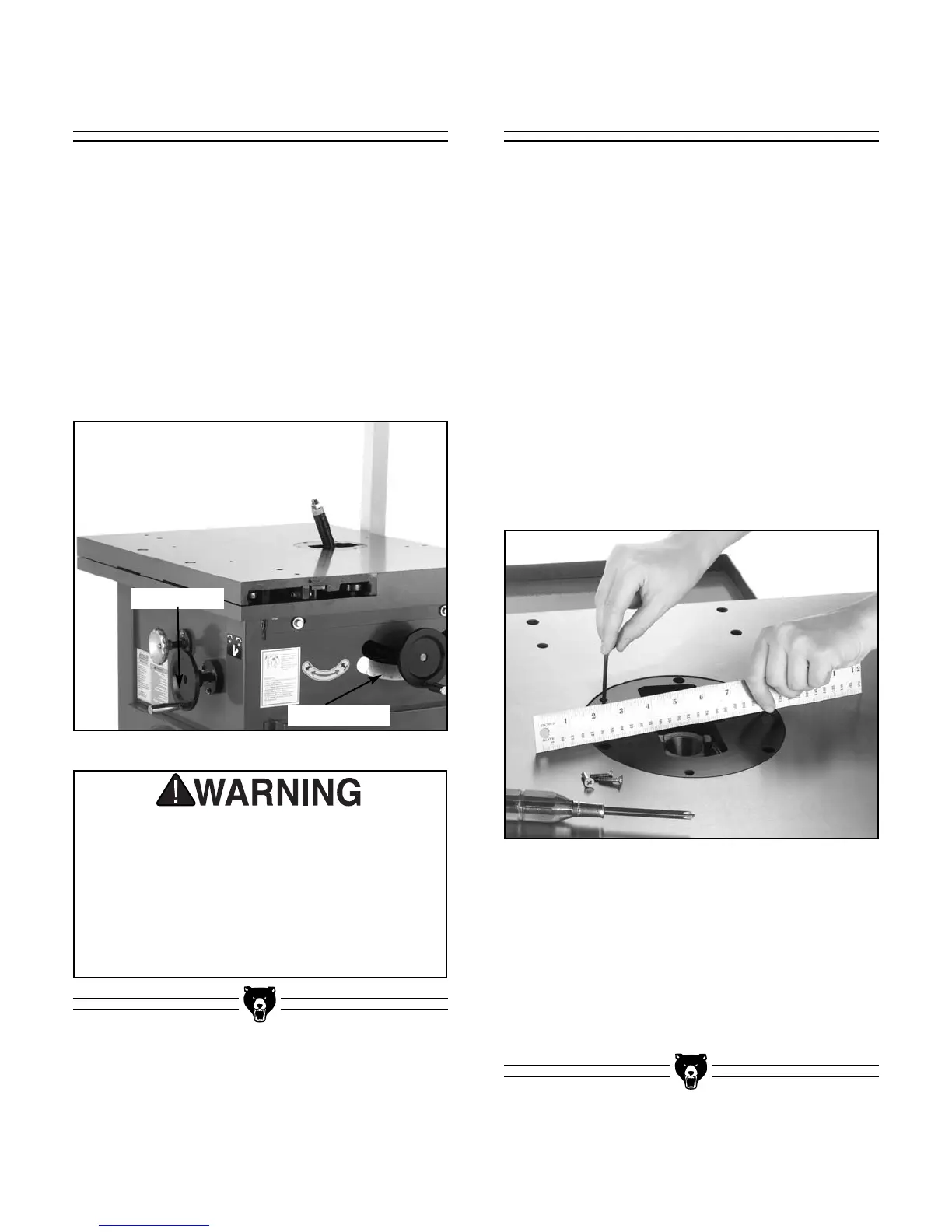 the cutterheads do not hit the table insert or table