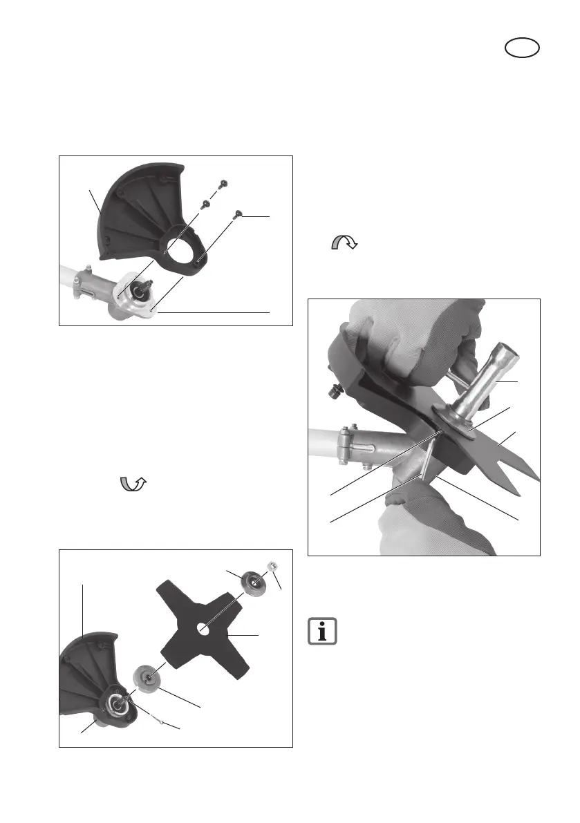 4. Schroef het metalen snoeiblad (18) te-