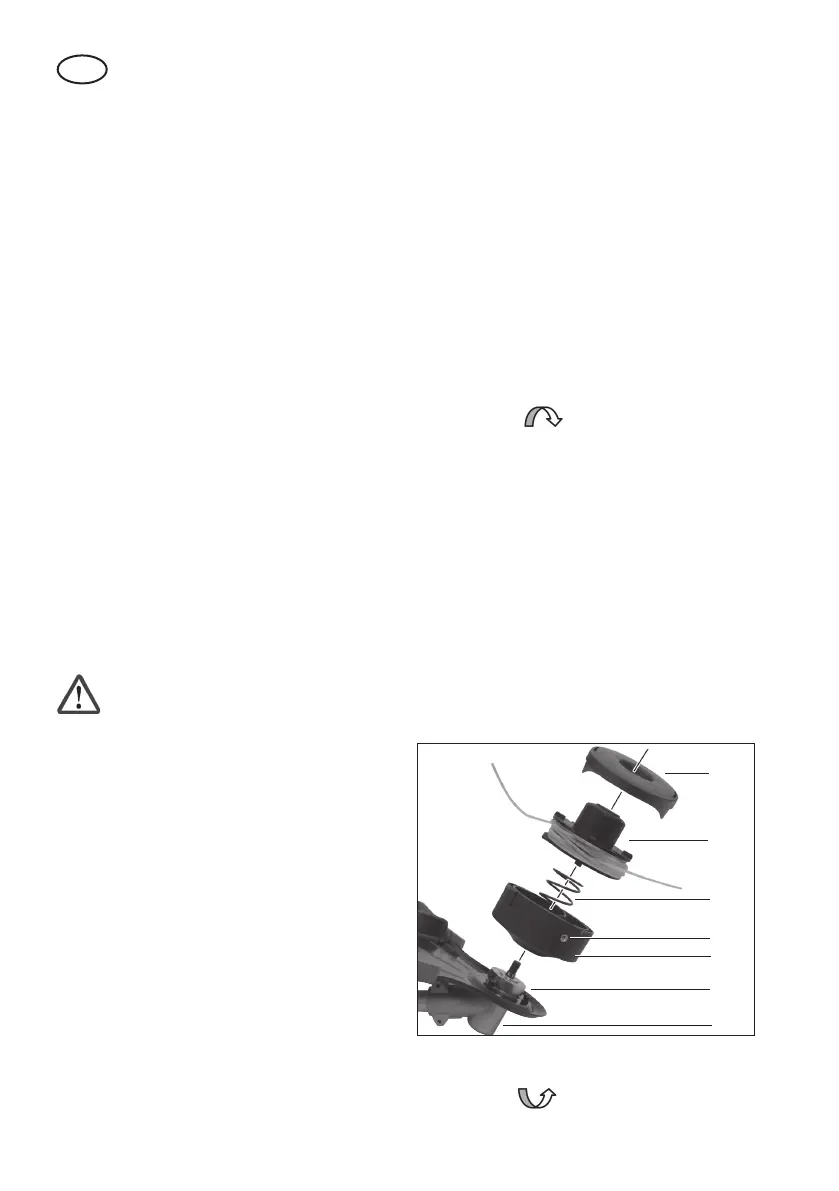 • Dirbdami pjovimo galvutę laikykite virš