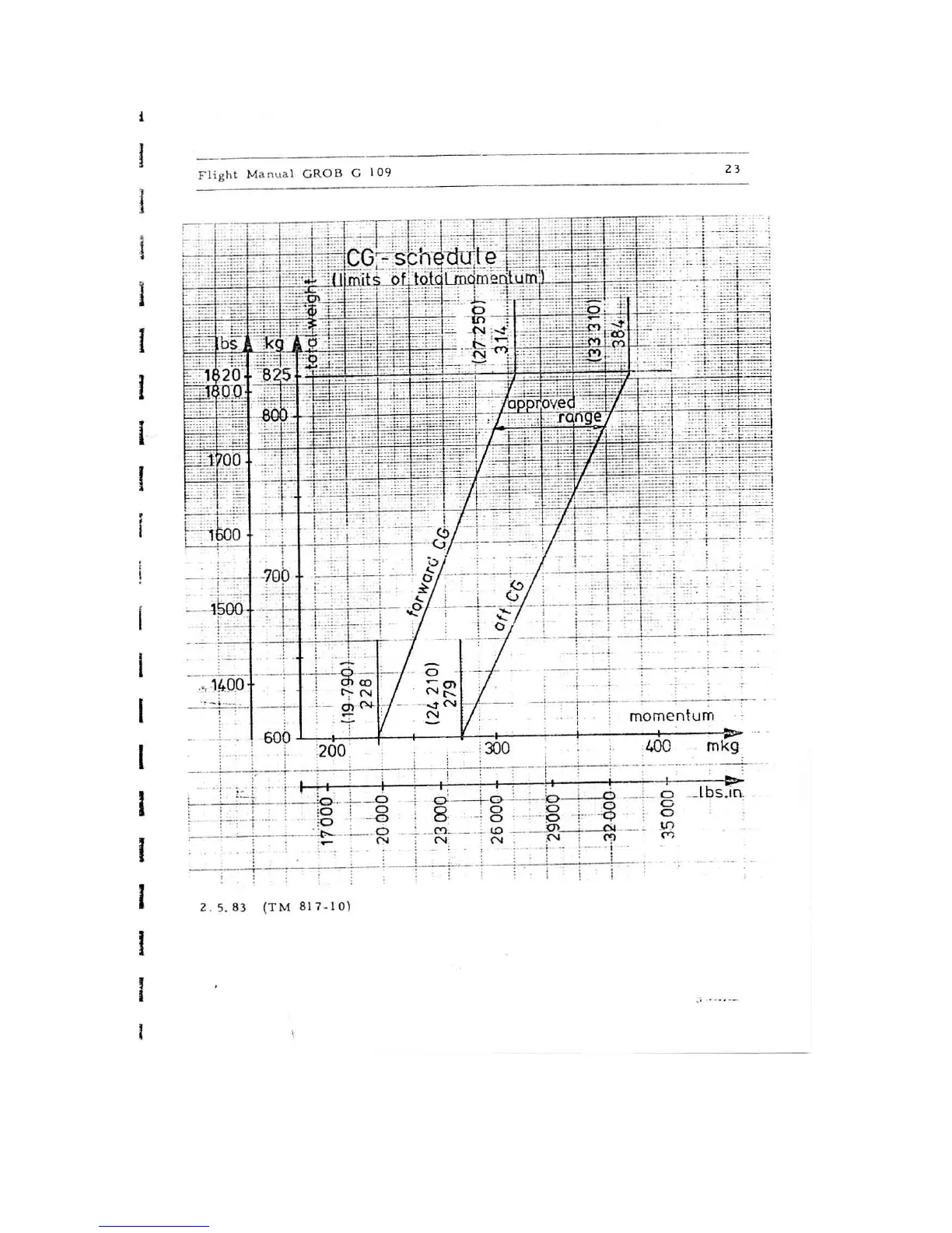 Grob G 109 - CG-Schedule (Limits of Total Momentum)
