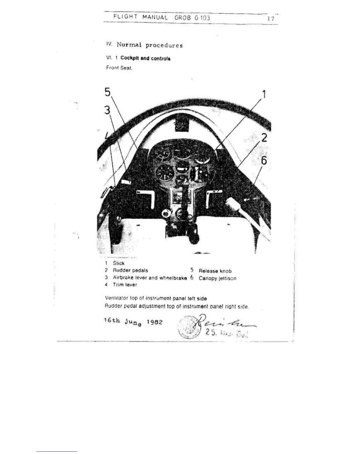 Grob G103 - Normal Procedures; Cockpit and Controls
