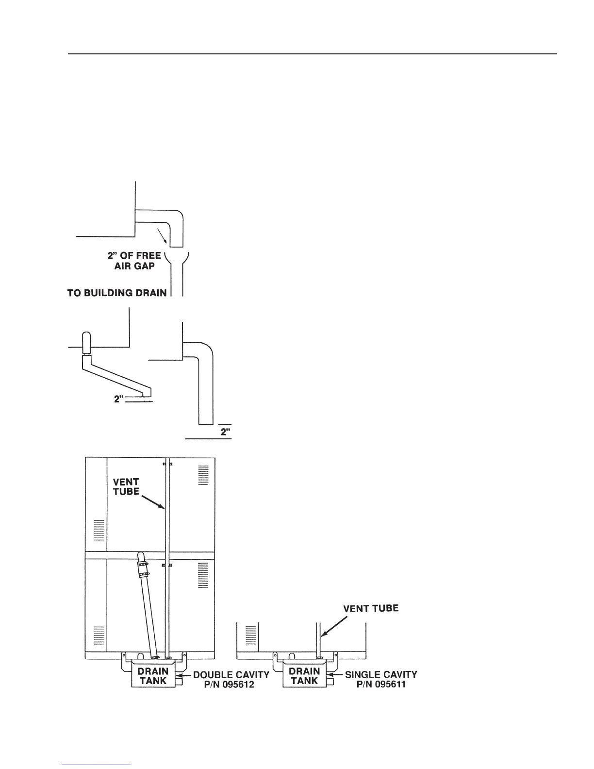 2. Free Air Gap: 2" free air gap required between drain hose and