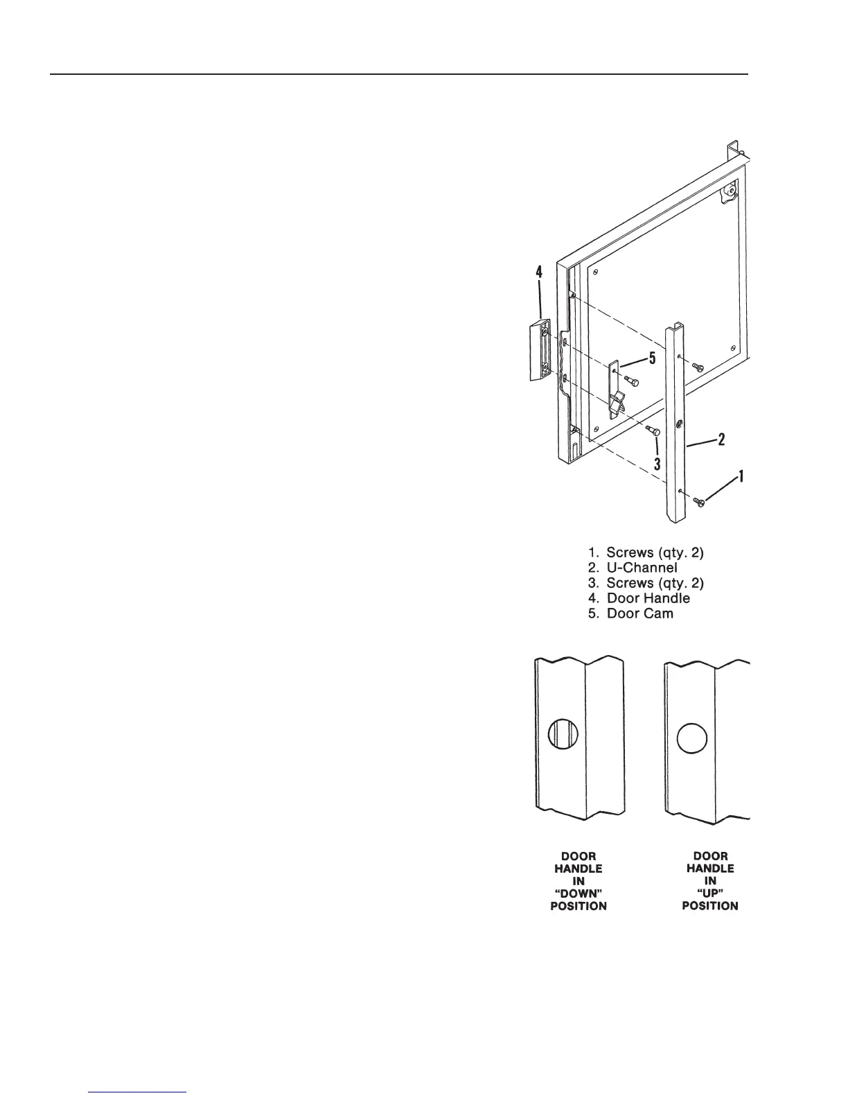 3. Be sure door handle is in the down position. Hold U-channel