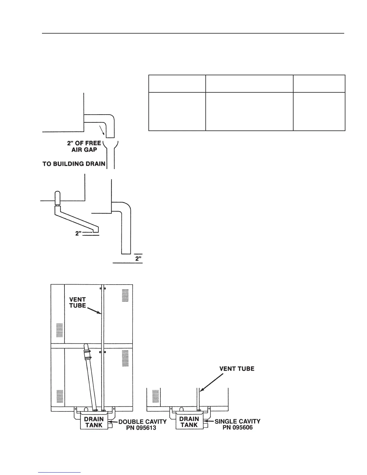 2. Free Air Gap: 2” free air gap required between drain hose and building