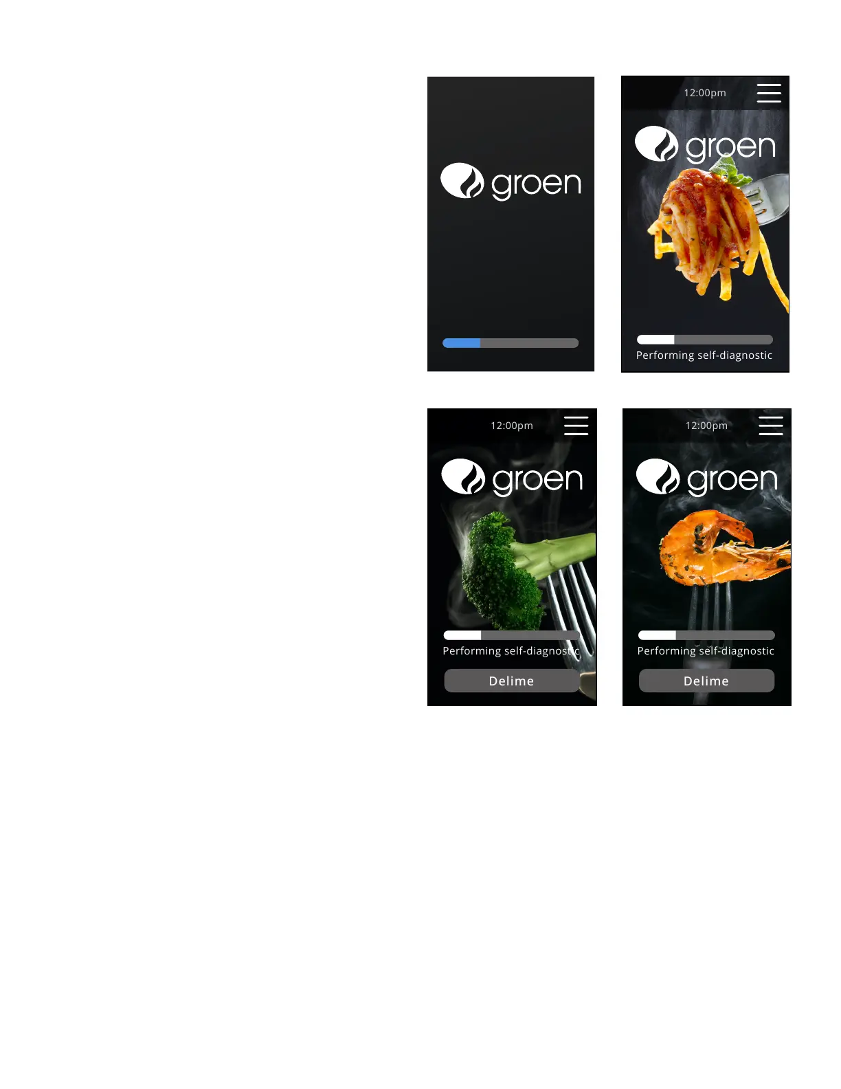 Broccoli, Shrimp) and displaying a linear progress bar animation. Images will