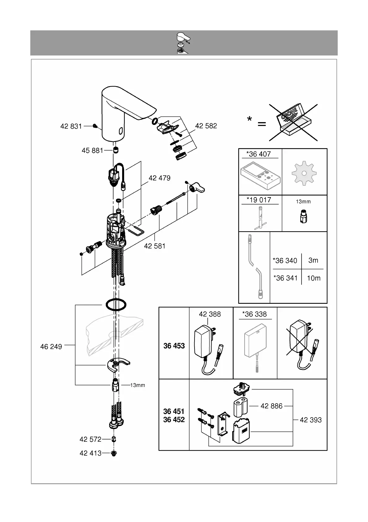 Grohe BAU COSMO E - Parts and Accessories; Exploded Parts View; Accessory List