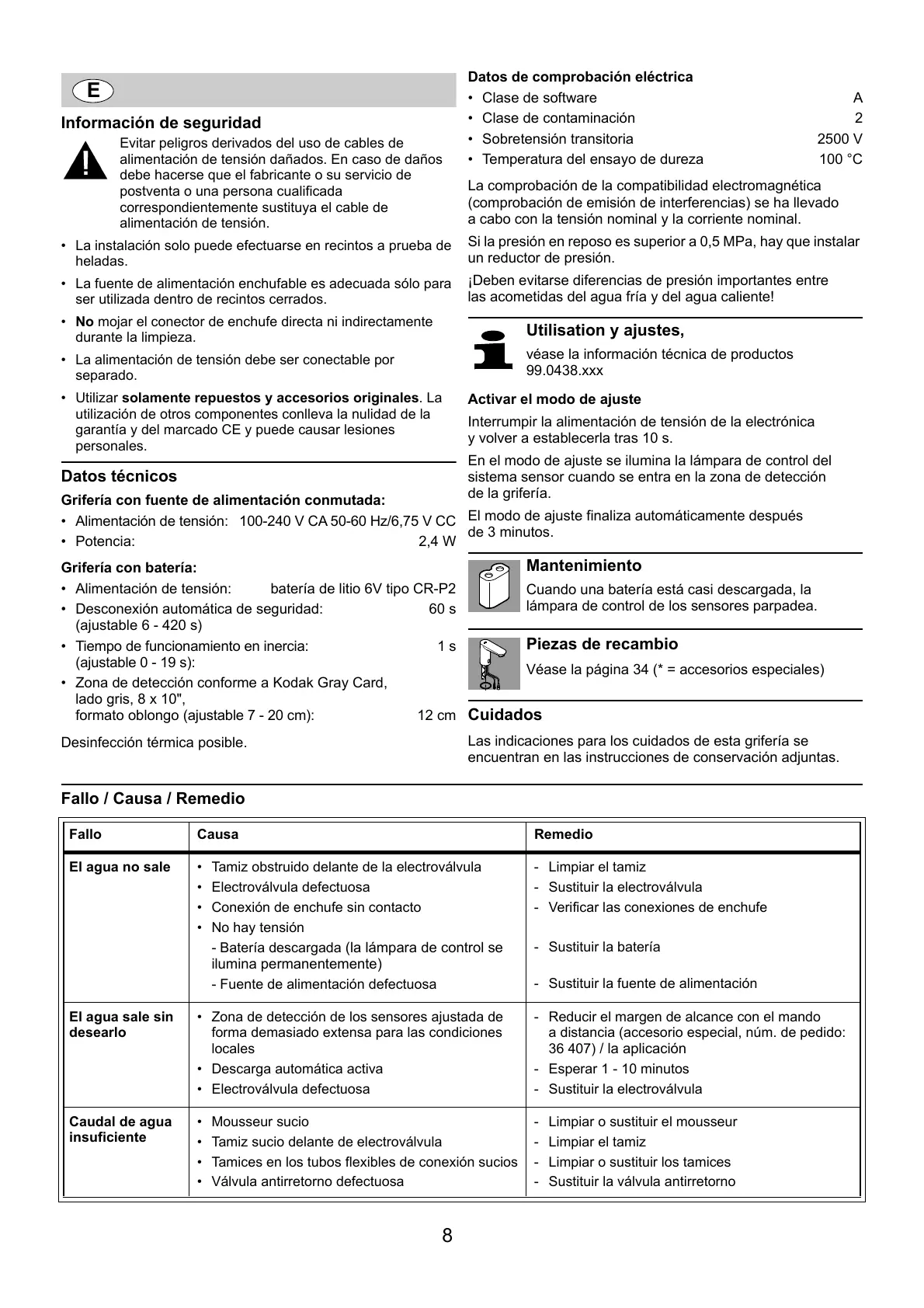 El agua no sale • Tamiz obstruido delante de la electroválvula