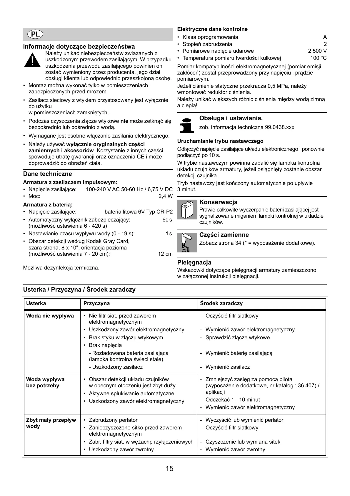 Wskazówki dotyczące pielęgnacji armatury zamieszczono
