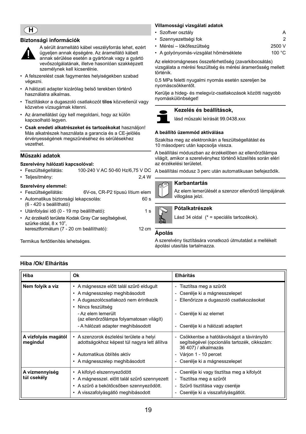 A szerelvény tisztítására vonatkozó útmutatást a mellékelt