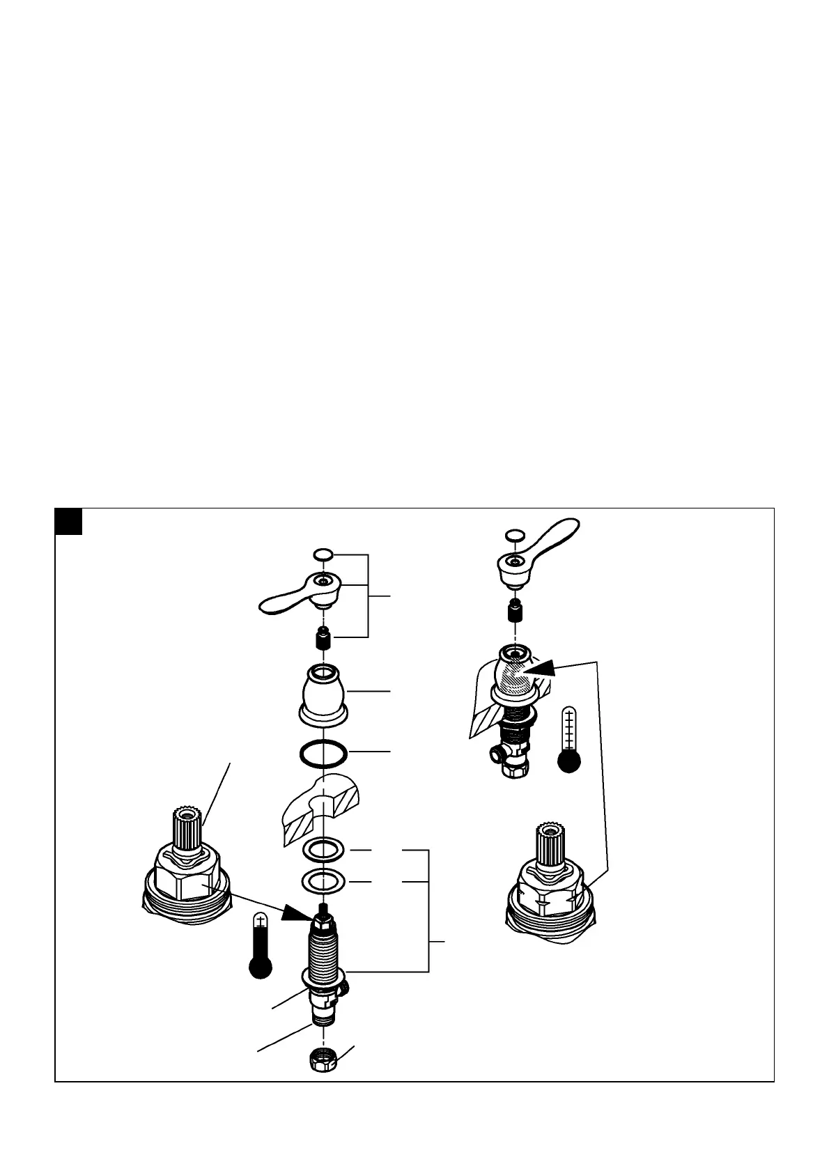 6. Install the lever (E) to the stem of the cartridge (A) and be sure