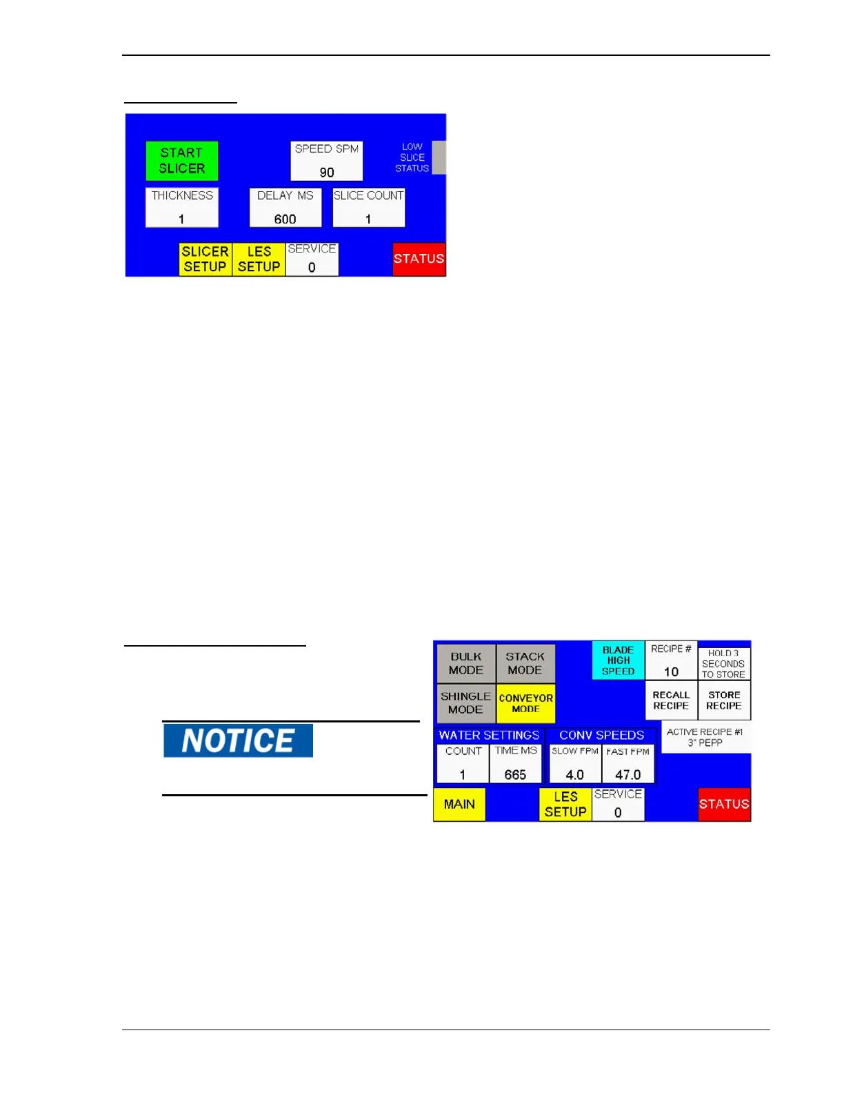 STACK MODE – Touch to run the slicer in Stack Mode. In this mode, the machine indexes the conveyor
