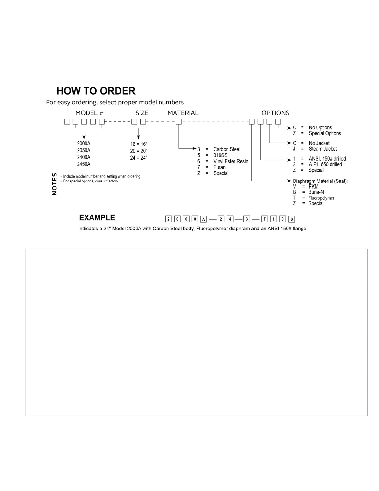materials of construction and options. The following chart will assist in relating the model number to the
