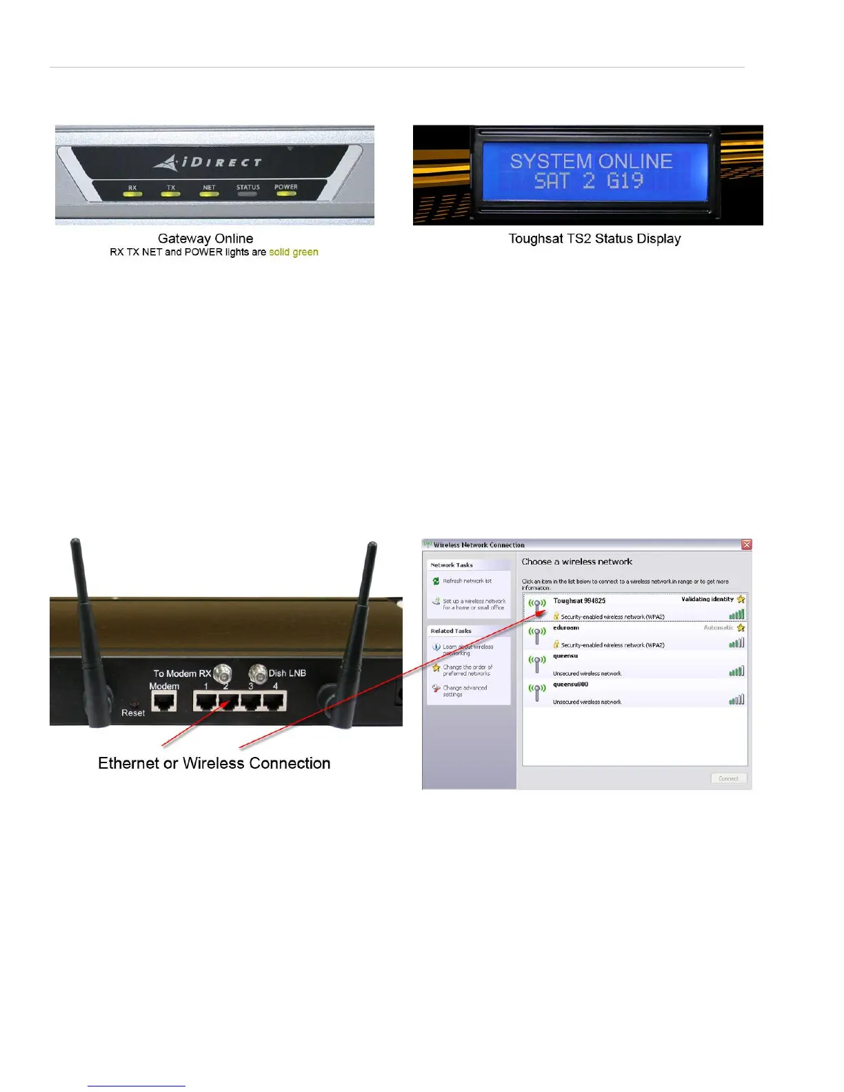 solid green. Also the Toughsat display will display the current system status. If you do not see this light pattern, it could