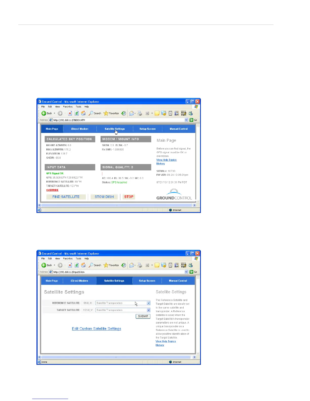 3. Bring up the dish control page at 192.168.1.2