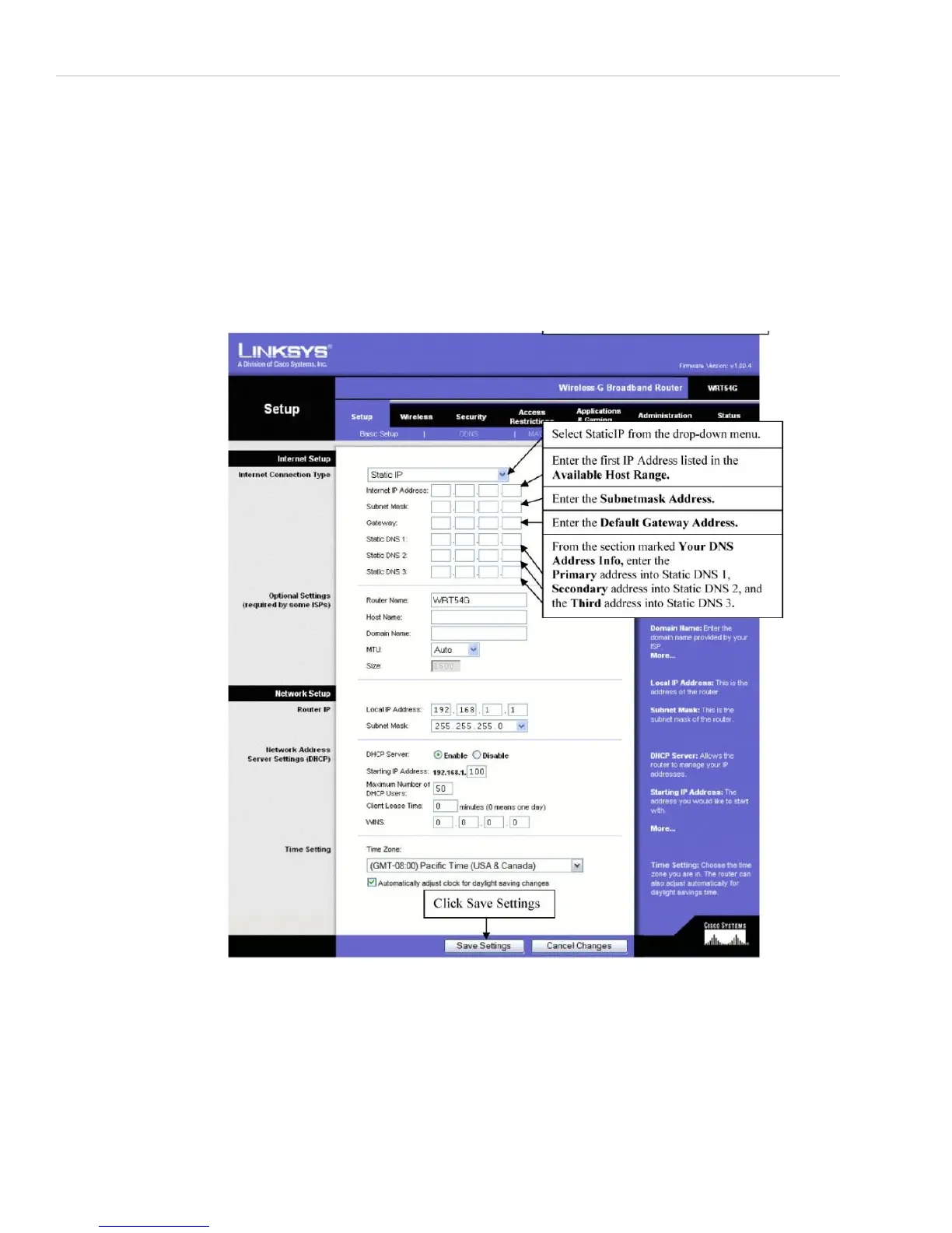 If the IP settings were wrong, change them. Then click on “Save Settings”