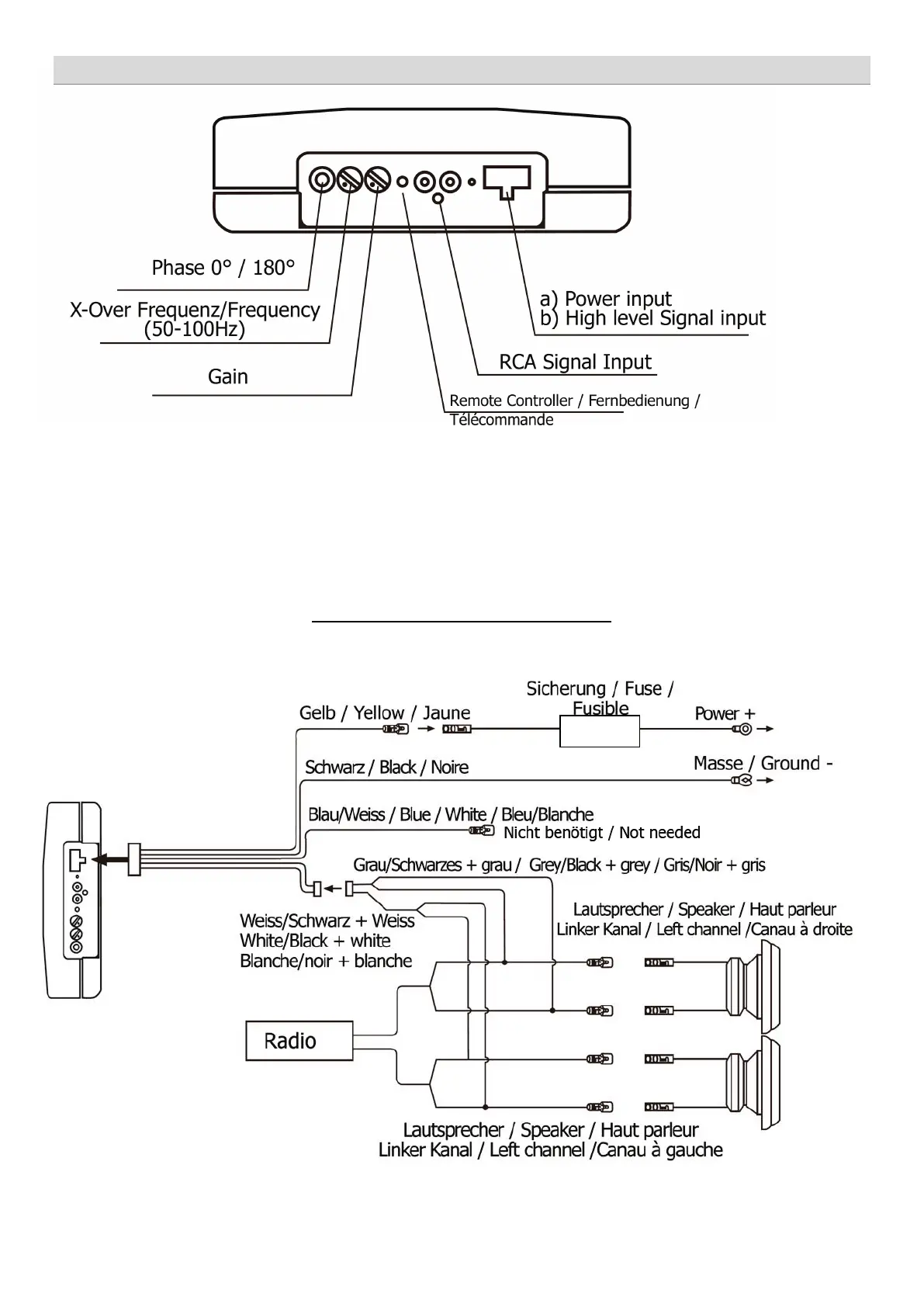 Verwenden Sie entweder den RCA- oder den High Level Input. Nutzen Sie nie beide Eingänge gleichzeitig!