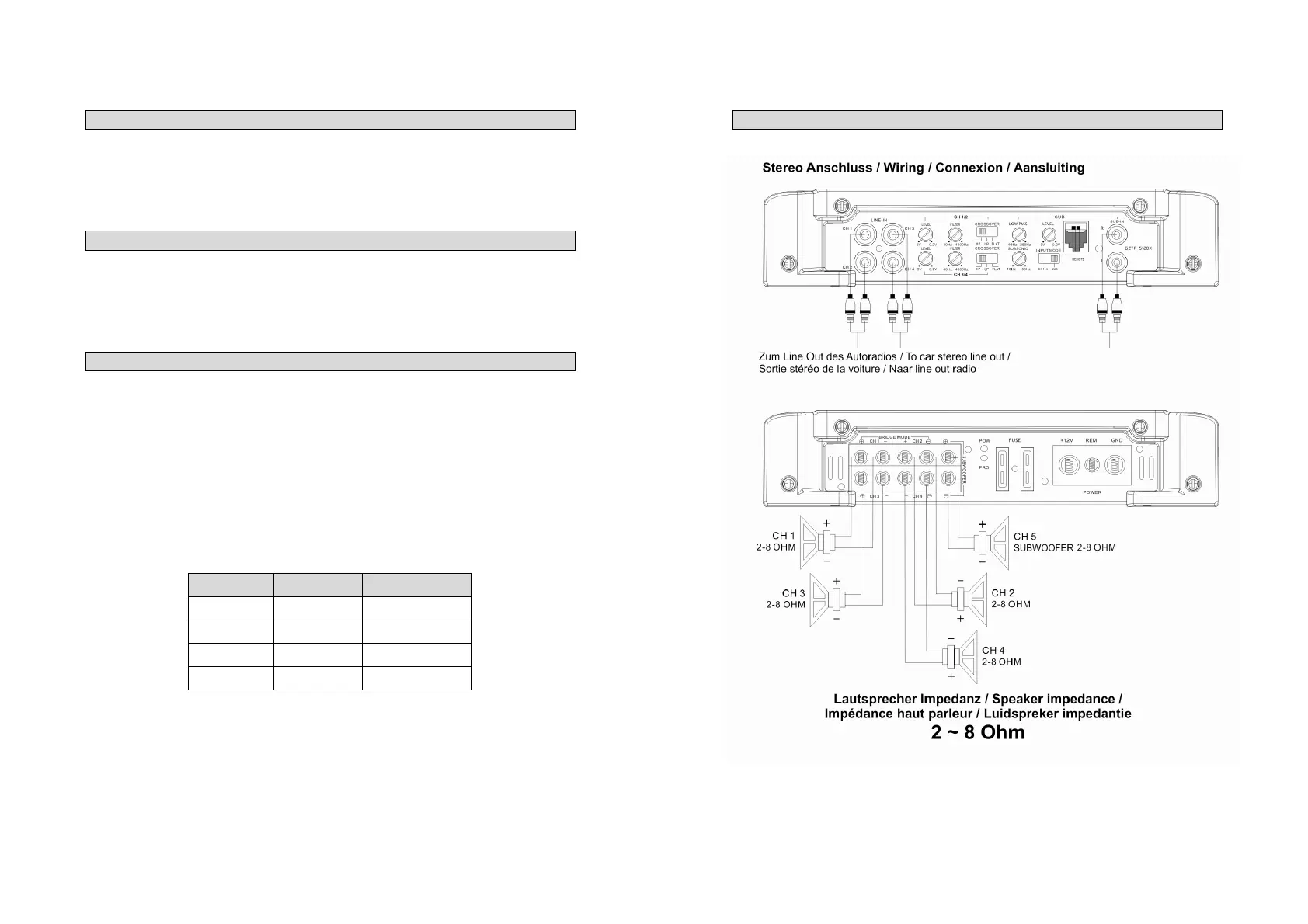 amplificador tienen esta capacidad de operacion. Sólo los canales traseros de la izquierda y la derecha se