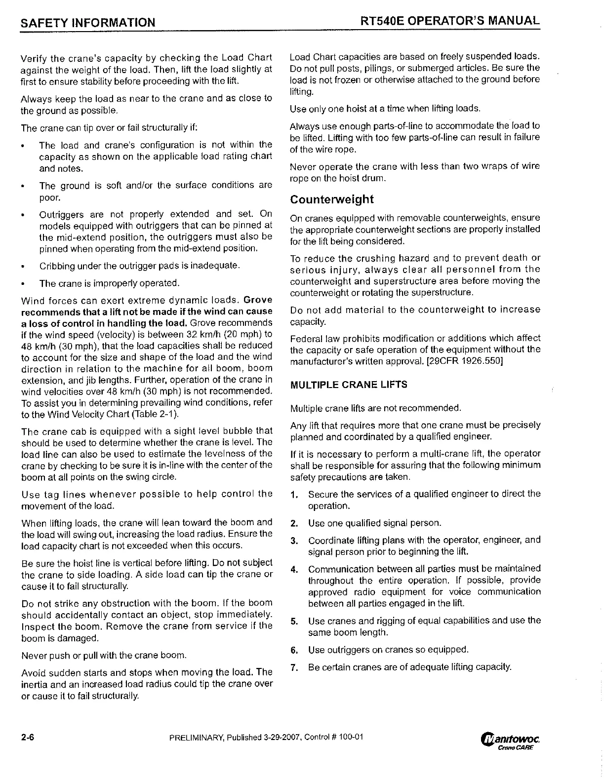 Grove RT540E - Multiple Crane Lifts; Counterweight