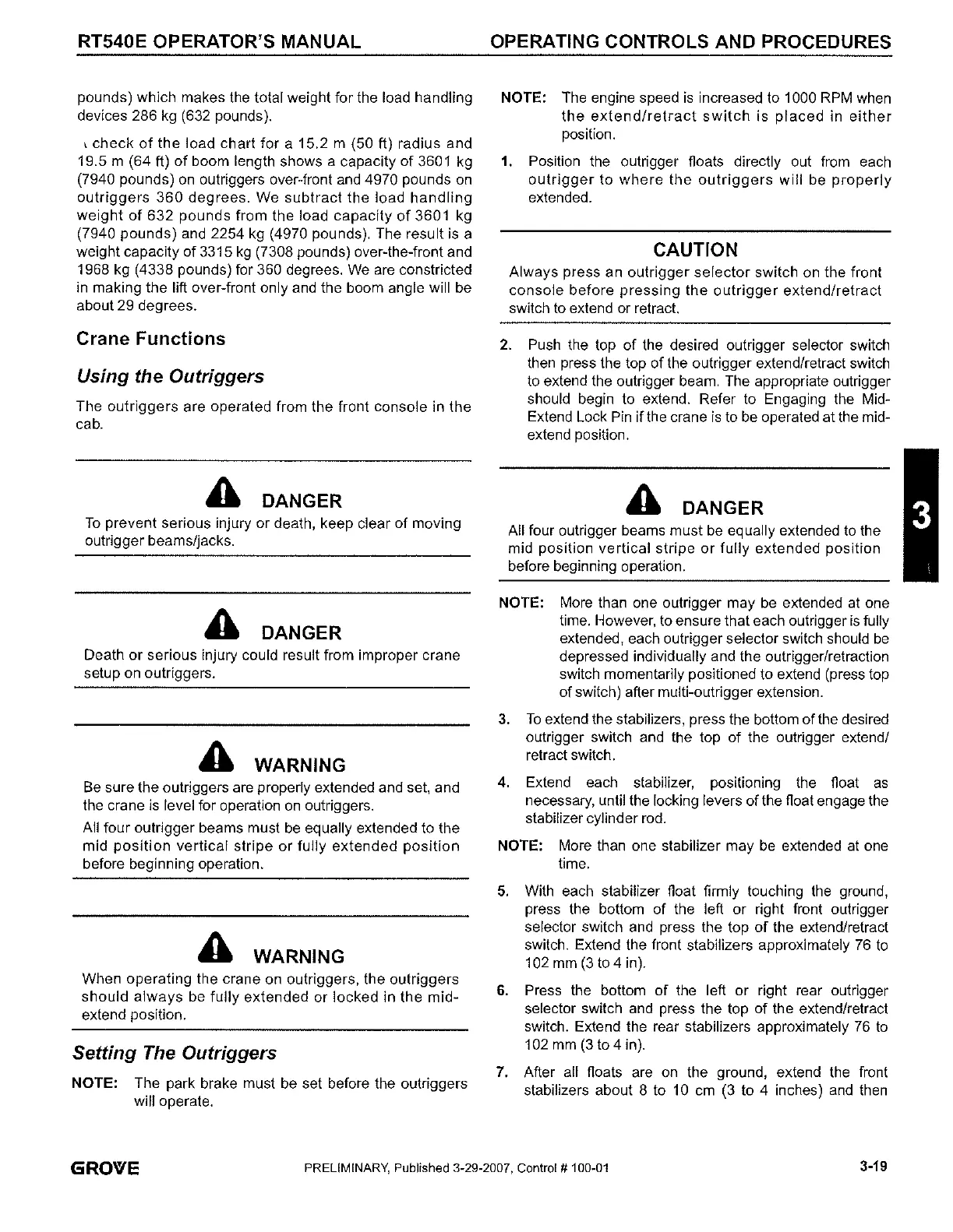 Grove RT540E - Crane Functions; Using the Outriggers; Setting the Outriggers