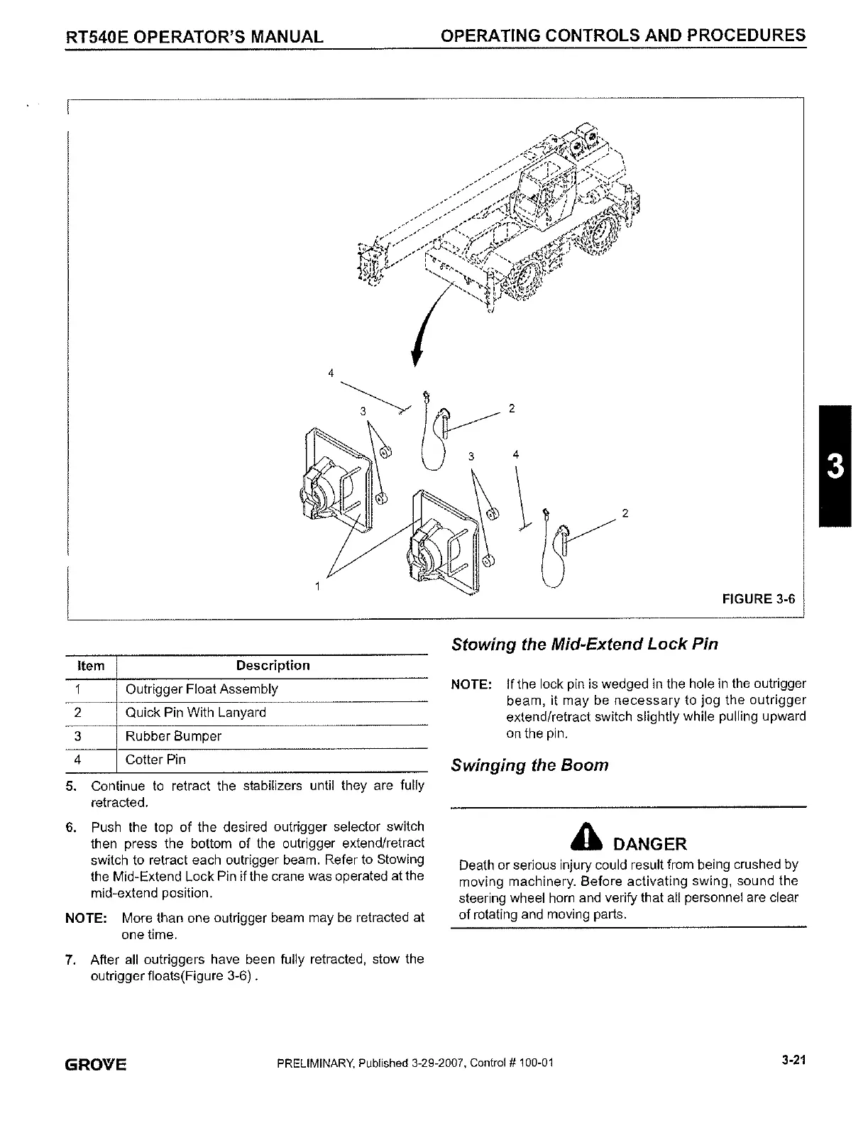 Grove RT540E - Stowing the MID-Extend Lock Pin; Swinging the Boom