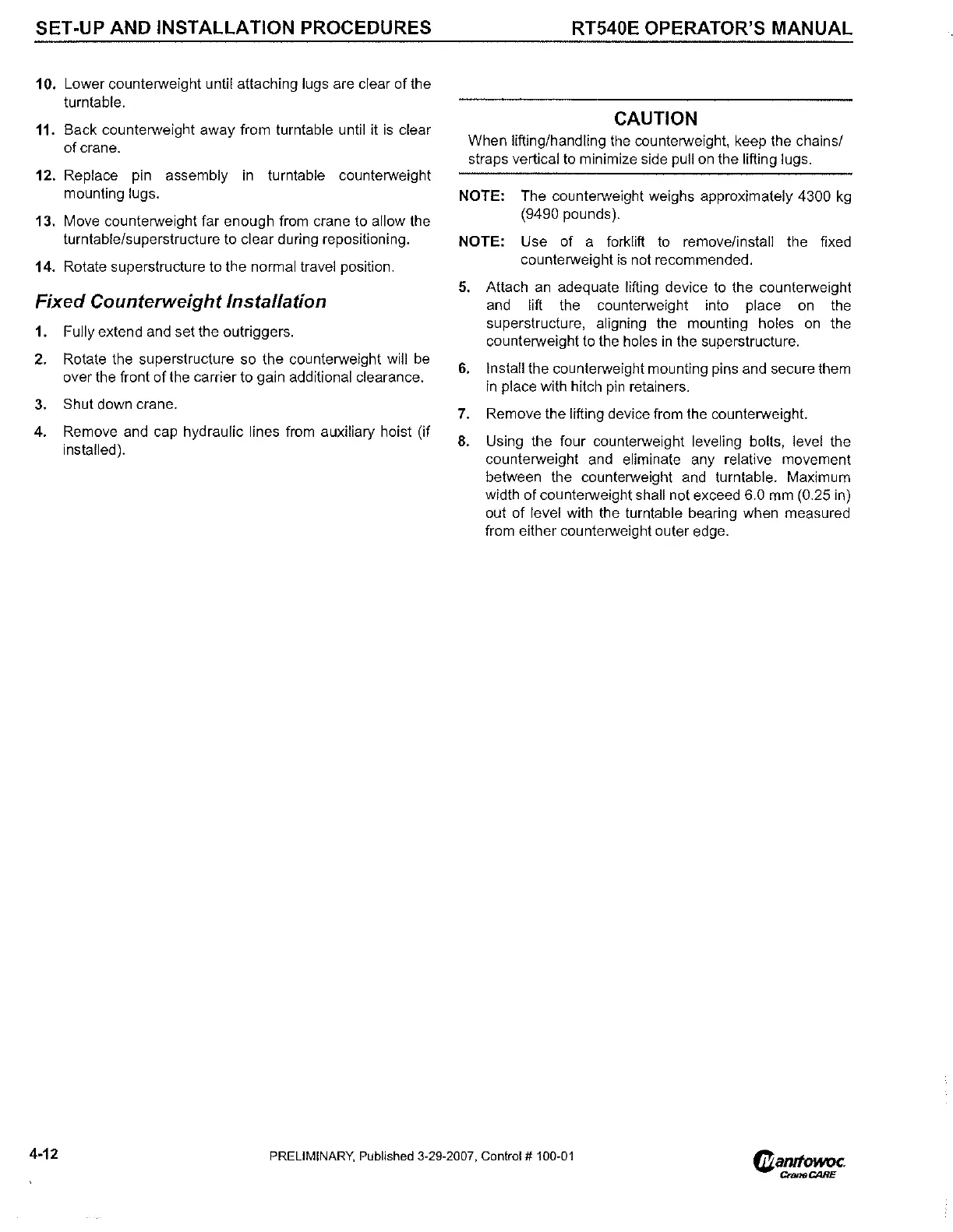 Grove RT540E - Fixed Counterweight Installation