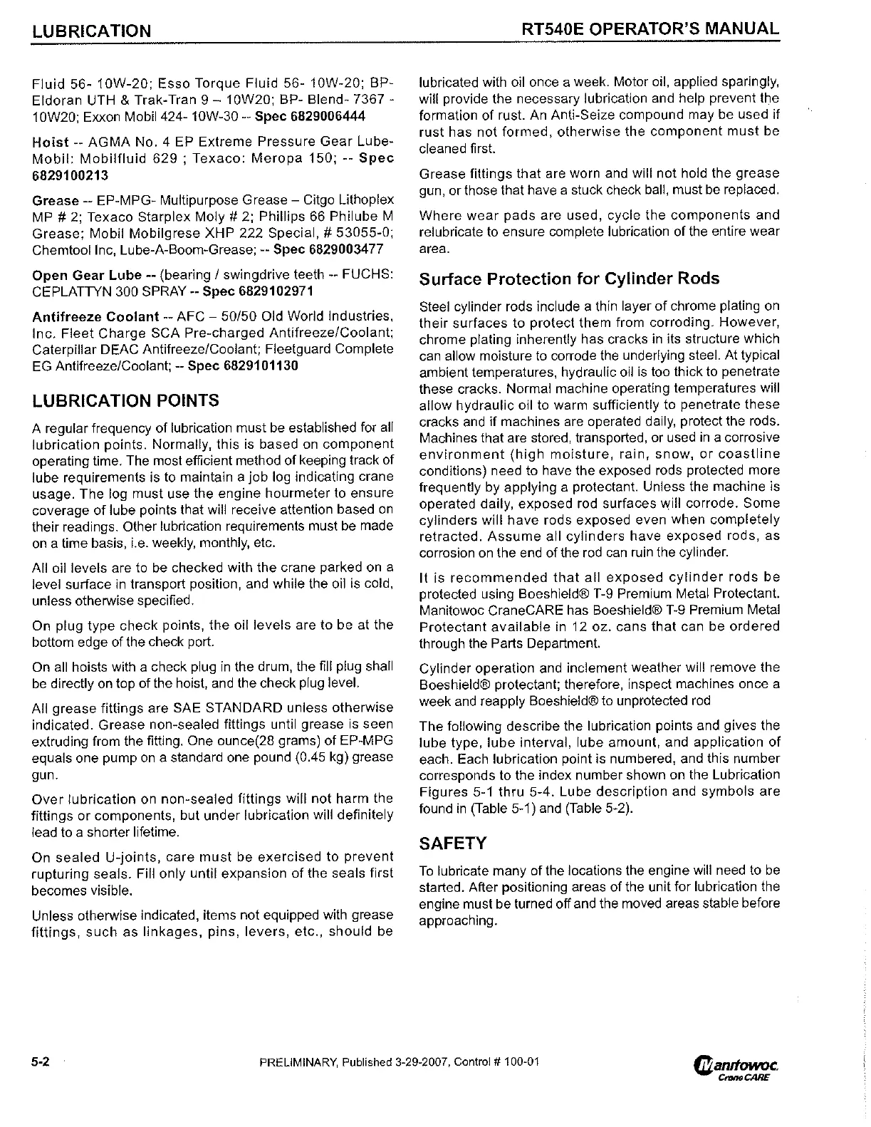 Grove RT540E - Lubrication Points; Surface Protection for Cylinder Rods