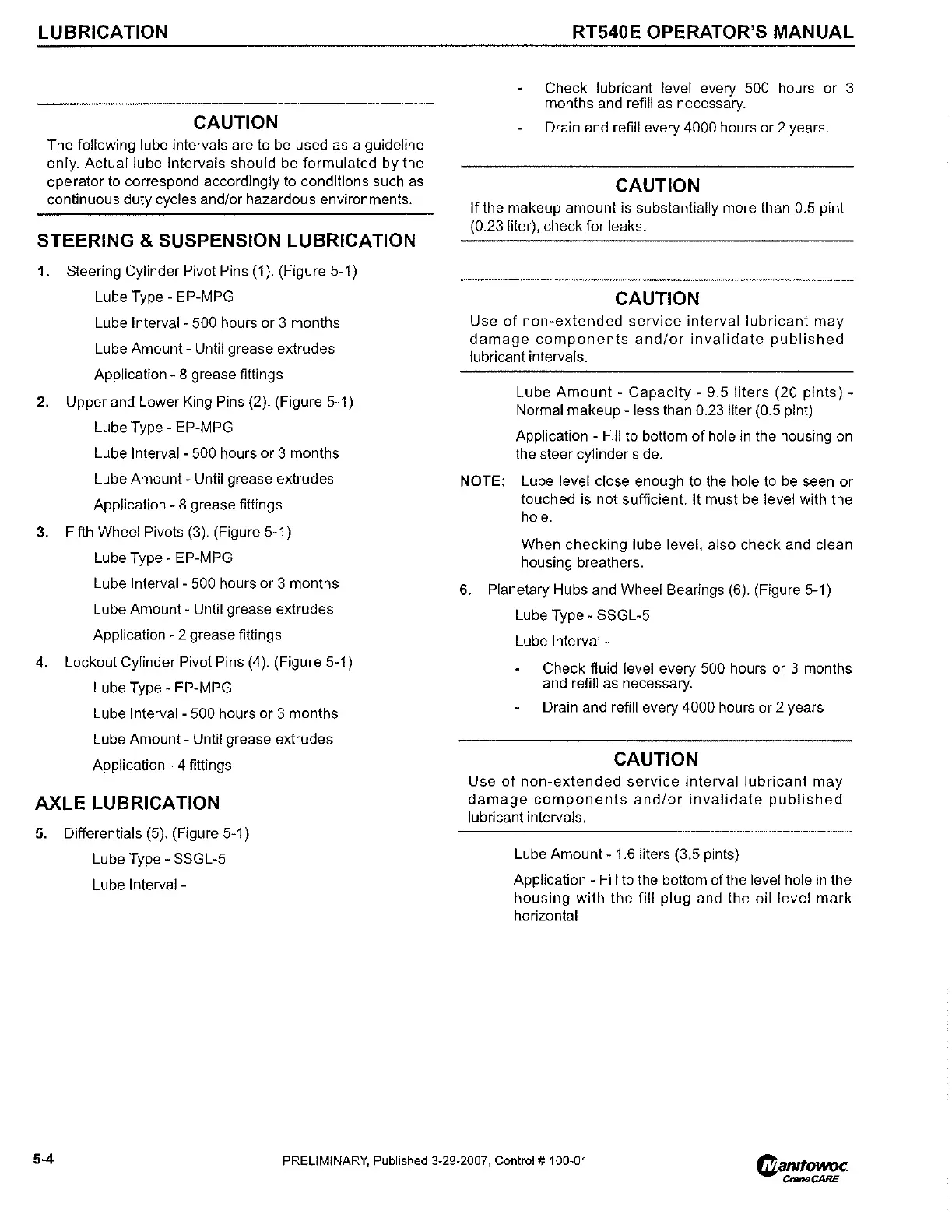 Grove RT540E - Steering, Axle, and Drive Train Lubrication