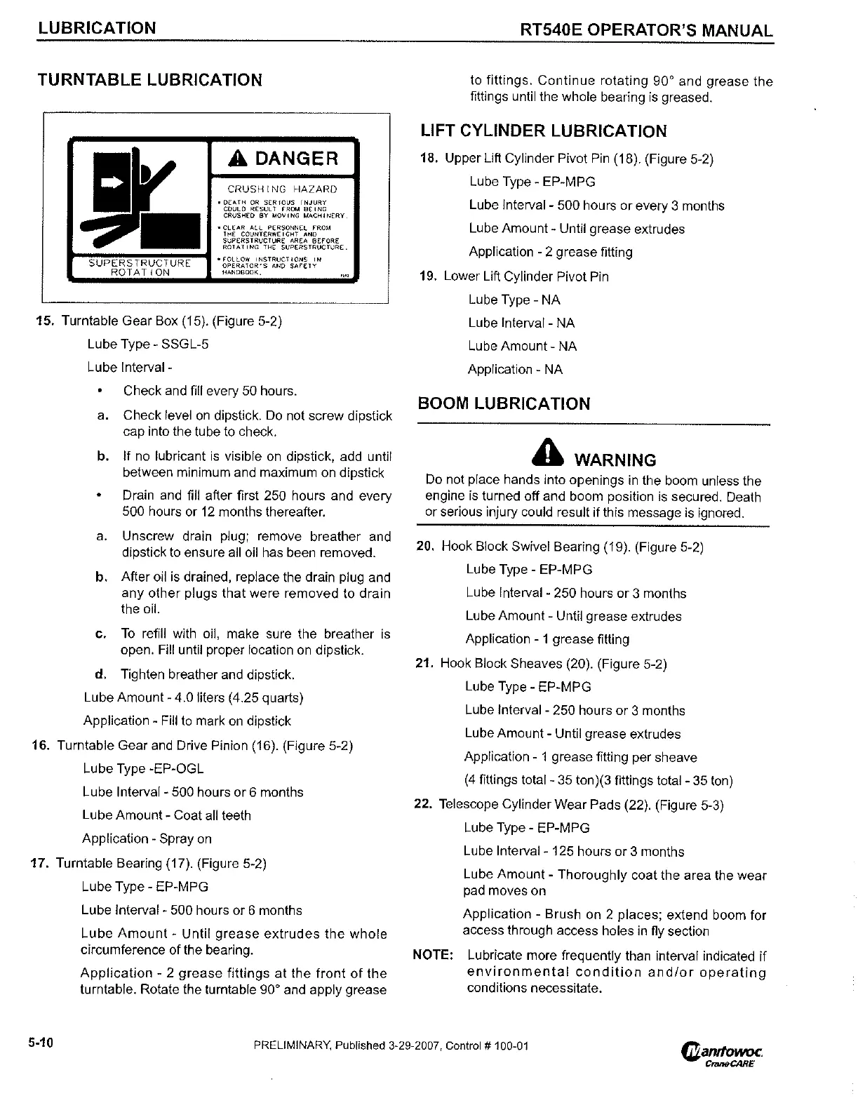 Grove RT540E - Boom, Hoist, and Hydraulic System Lubrication