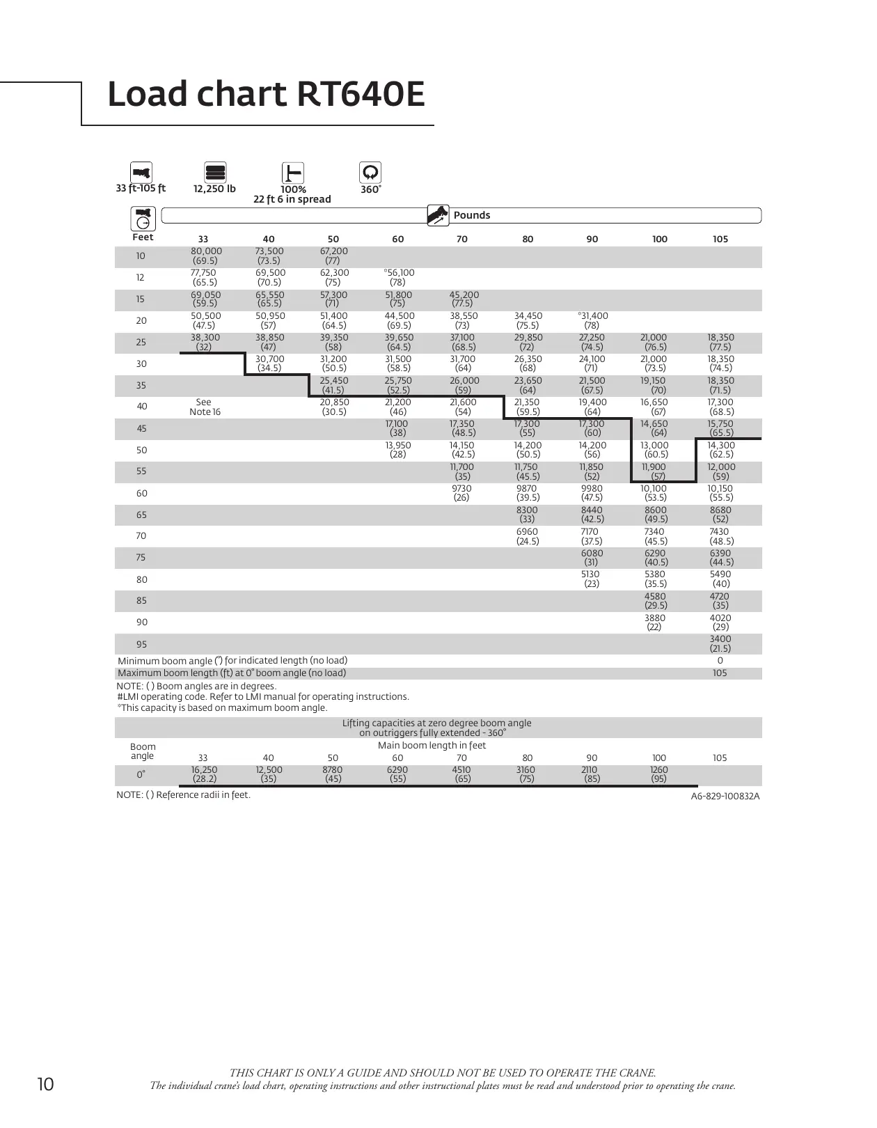 THIS CHART IS ONLY A GUIDE AND SHOULD NOT BE USED TO OPERATE THE CRANE.