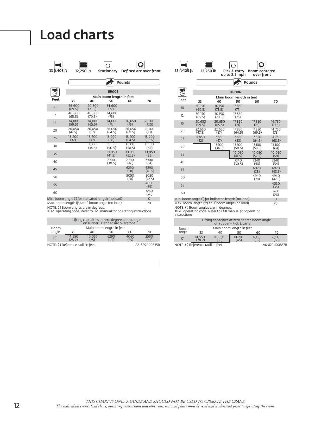 THIS CHART IS ONLY A GUIDE AND SHOULD NOT BE USED TO OPERATE THE CRANE.