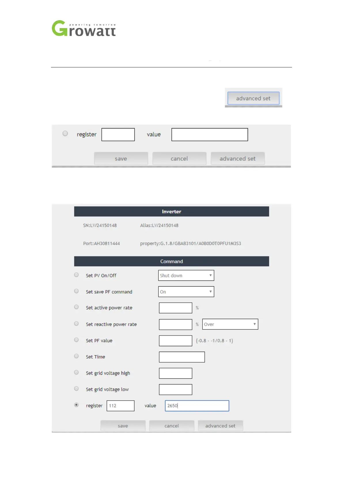 (2) Choose the option “register”, and fill in the register number 112, and the set value. We
