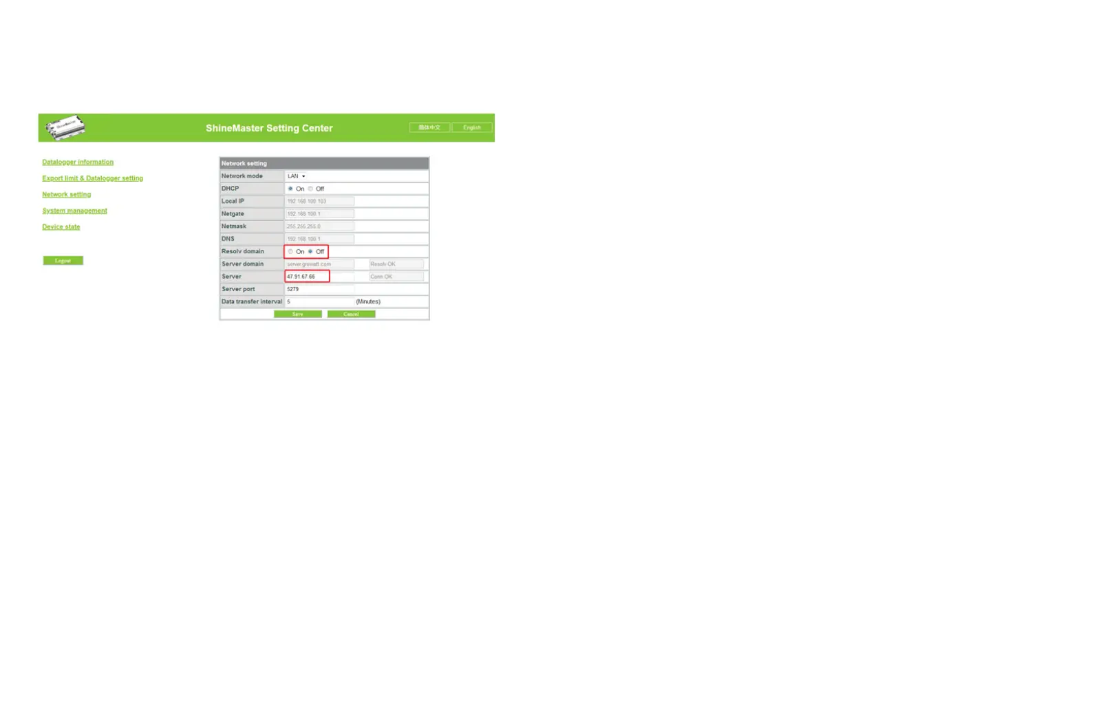 Note:Server port name and data upgrade interval are fixed cannot be changed.