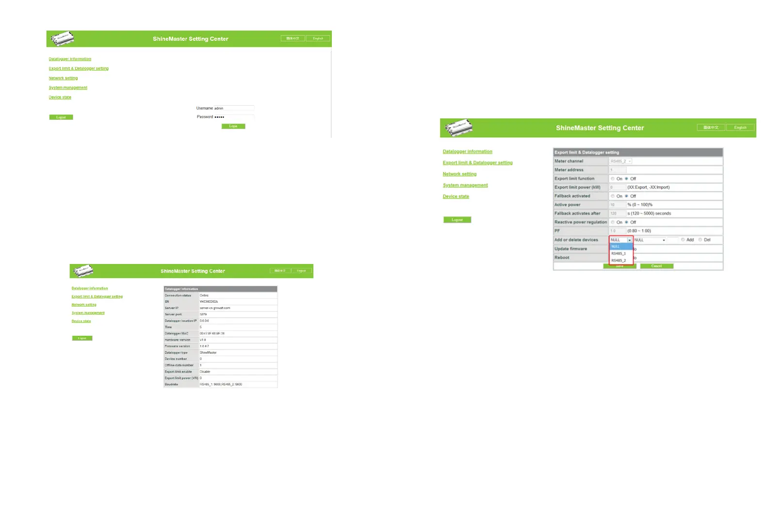 Devices should be added in ‘ShineMaster datalogger setting’ interface in internal page