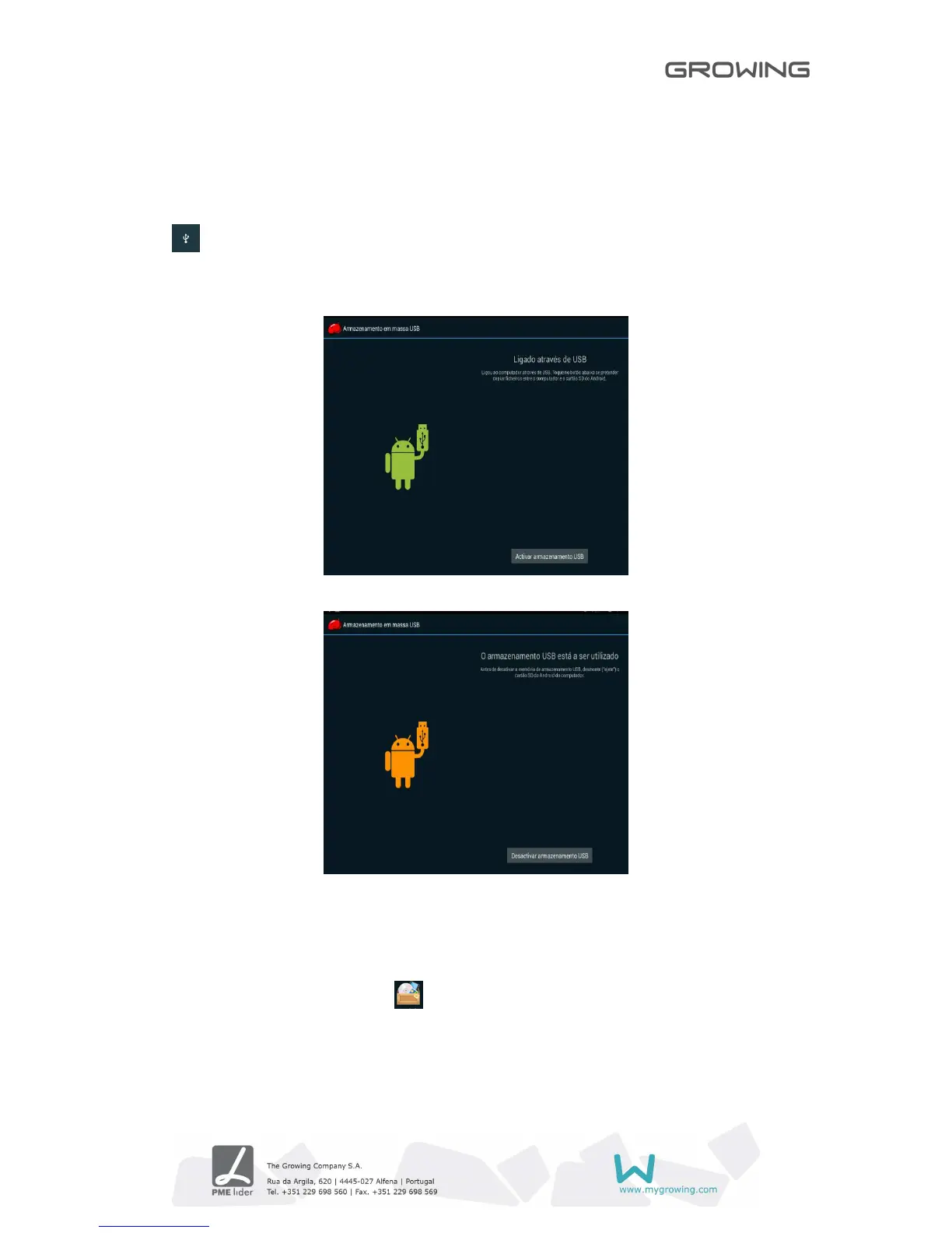 Quando conectado ao computador poderá ser usado como disco USB. Clique no ícone