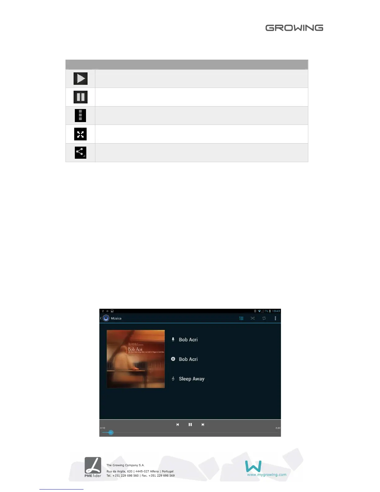 the card. (GROWING The Smartphone supports playback formats: mp4, 3gp, avi, fiv, mpg,