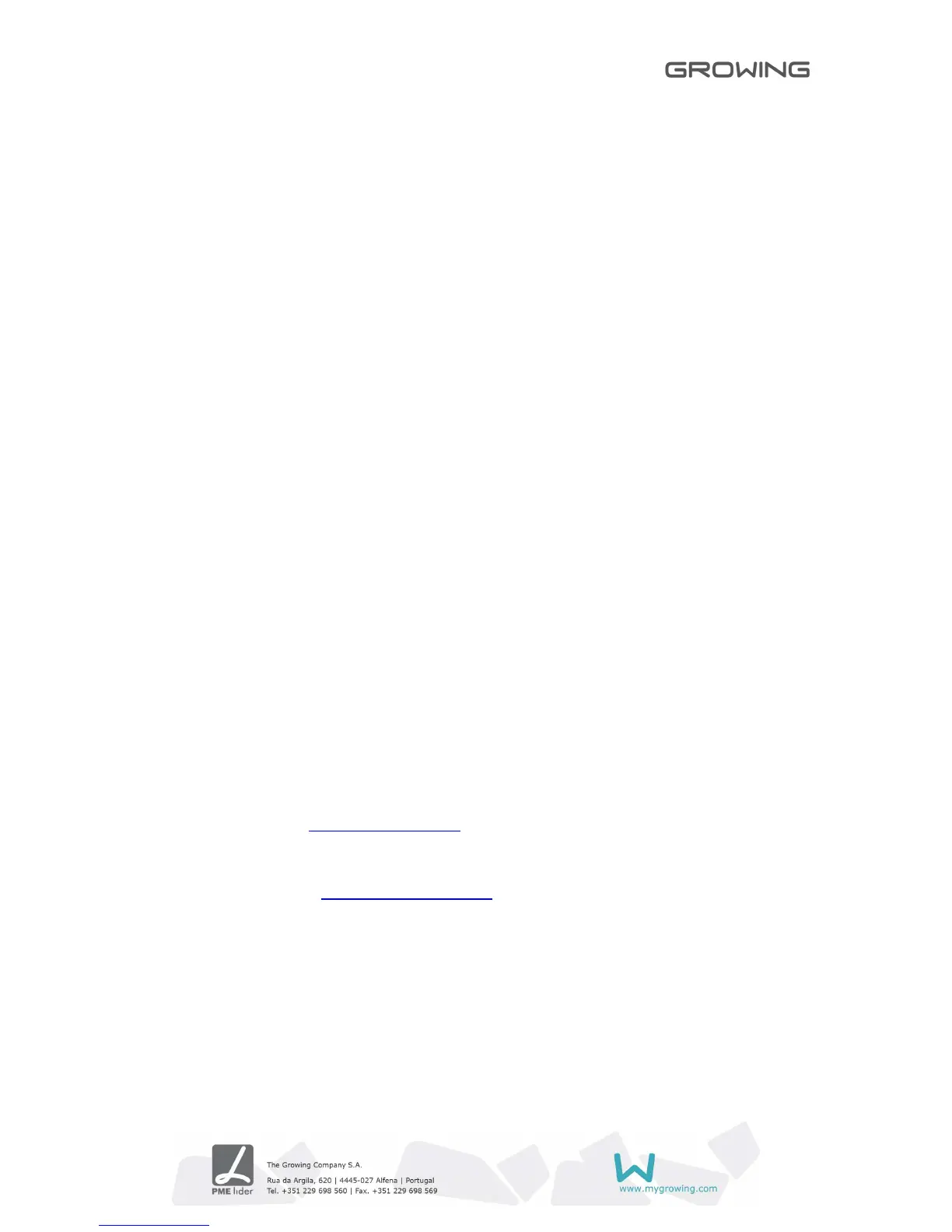 • Directamente al GROWING a través del teléfono (351 808 20 29 30) o correo